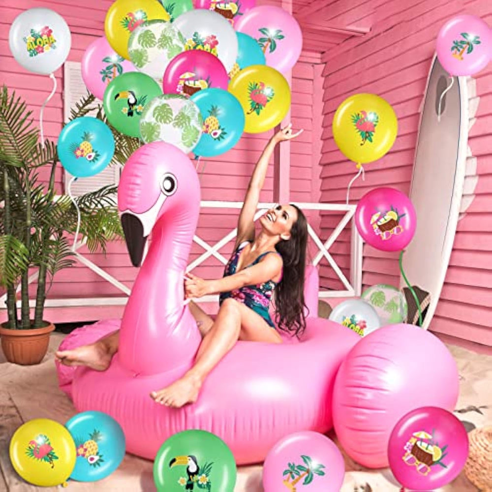 | Package Includes: You Will Receive 50 Pieces Hawaii Summer Balloons In 7 Different Types, Including 14 Palm Leaves Balloons, 6 Each Of Other 6 Designs; The Size Of A Balloon Is 12 Inch; Sufficient Quantity And Various Styles Can Satisfy Your Decorative Demands; Besides, There Are 2 Rolls Of Balloon Ribbons, 10M Long Each, Enough For You To Hang The Balloons | | Quality Material: Our Tropical Beach Party Balloons Are Made Of Quality Latex Material, Which Is Serviceable Than Other Balloons, Not Easy To Blow Or Explode, Suitable And Safe For You To Use To Decorate Hawaii Luau Theme Party; Your Family And Friend Will Love Them | | Eye Catching Decoration: These Summer Party Theme Balloons Are Easy To Inflate, You Don'T Need Much Effort; These Hawaii Party Balloon Decorations Can Be Decorated On Walls, Windows, Trees And Party Tables, Backyard, Lawn Or Garden Party, If You Tie Them Tight, The Balloons Can Hold The Air For Several Days | | Delicate Design: These Hawaii Aloha Balloons Are Designed With Rich Tropical Elements, Such As Beach, Flamingos, Palm Leaves, Coconuts, Which As If You Are In A Summer Full Of Sunshine; Besides, They Come In Many Colors, Like Blue, Pink, Yellow Or So, They Will Create An Atmosphere For You, Just Enjoy Your Happy Time | | Widely Application: These Summer Luau Balloon Decorations Feature A Wide Array Of Application, They Can Be Applied Not Only For Summer Themed Beach Parties, But Also For Spring And Summer Family Gatherings, Weddings, Hawaiian Themed Weddings, Pool Parties, Tiki Parties, Hawaiian Birthday Parties Or Baby Shower | |