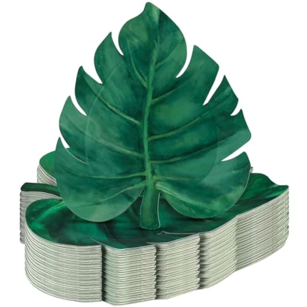 Hawaiian Party Plate: Indulge In The Joy Of Tropical Themed Fiestas With Our Set Of 50 Leaf Shaped Plates; Accommodating 50 Guests, Our Vibrant Green Palm Leaf Pattern Is Suitable For Summer, Pool, Beach Parties Or Picnics; Enjoy Celebrations And Make Cleaning A Breeze By Using Our Disposable Plates, Enhancing Your Party Experience | Eat In Tropical Style: Add A Refreshing And Exotic Touch To Your Dining Events, Buffets, Gatherings, Or Everyday Meals With Our Tropical Plate; The Green Palm Leaf Is To Turn Heads And Infuse Your Event With An Invigorating Tropical Vibe, Leaving An Unforgettable Dining Experience | Right Size For Food: Leaf Plates Party Measure About 9.8 Inches/ 25 Cm, A Suitable Size That Allows Presenting Various Snacks Or Fruits; This Gives Your Guests More Choices And To Pick Food They Like Easily, Amplifying The Overall Dining Journey | Quality And Durability: Our Hawaiian Themed Green Desert Plates Are Made Of Quality, Thick Paper, Offering Durability That Ensures A Firm, Fold Resistant Surface Ideal For Carrying Food; Whether Laden With Fruit, Appetizers, Or Main Courses, These Plates Stand Up To The Task With Grace | Ideal For Themed Tropical Celebrations: With Our Tropical Paper Plates, Immerse Into The Tropical Ambiance Seamlessly; These Plates Fit For Various Celebrations Like Birthdays, Weddings, Engagements, Baby Showers, Bachelorette Or Bridal Shower Parties, Bringing Tropical Themed Party To Life |