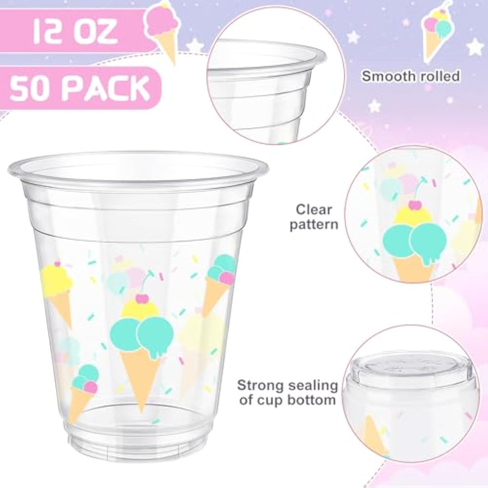 | Ample Supply For Your Event Needs: With Every Purchase, You Receive A Total Of 50 Pieces Of Ice Cream Disposable Plastic Cups; It'S An Ideal Quantity That Ensures A Steady Supply For Your Event; The Amount Also Allows For Easy Disposal And No Need For The Hassle Of Cleaning Up | | Reliable Use: Made With Quality And Sturdy Plastic Material, These Ice Cream Themed Cups Are Built To Withstand Both Hot And Cold Beverages, Suitable For Coffee, Tea, Water And More; They Are Versatile, Reliable, And Designed To Provide A High Standard Of Performance, Ensuring That Your Guests Experience The Good In Terms Of Utility And Style | | Distinct Thematic Designs: The Ice Cream Drinking Cups Come With Various Kinds Of Ice Cream Themed Patterns; Excite Imagination, Or Gratify The Ice Cream Enthusiasts With This Mouth Watering Design | | Conveniently Sized And Portable: The Size Of These Ice Cream Disposable Cups, About 4 Inches/ 9.8 Cm In Top Diameter, 2 Inches/ 5.5 Cm In Bottom Diameter, 4.2 Inches/ 10.8 Cm In Height, Make Them Ideal For A Comfortable Hold; Thanks To Their 12 Oz Capacity, They'Re Ideal For A Generous Portion Of Any Beverage | | Ice Cream Party Favors: Suitable For Various Party Themes From Birthday Parties, Ice Cream Activities, Game Themed Events Or Just Regular Family Gatherings, Our Disposable Plastic Cups Set Will Effortlessly Blend In, Contributing To The Overall Aesthetics Of Your Event Or Party | |