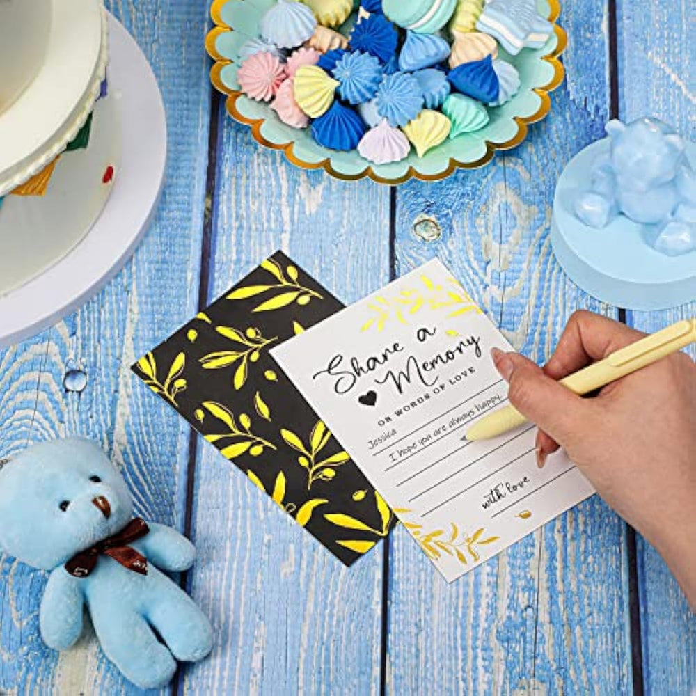 Ample Quantity: The Package Comes With 50 Pieces Of Share A Memory Cards, Measuring Approx. 10 X 15 Cm/ 3.9 X 5.9 Inches And 1 Piece Of Share A Memory Box, Measuring Approx. 19 X 19 X 19 Cm/ 7.5 X 7.5 X 7.5 Inches, Which Can Well Match Each Other And Retain Some Unforgettable Memories | Quality Material: These Memory Sign Cards Are Made Of Thick And Sturdy Paper Stock, The Paper Is Double Sided Printed Clearly, Not Easy To Fade Or Deform, It Is Suitable For Various Types Of Pens And Can Serve You For A Long Time | Greenery Element: The Black Greenery Memory Card Box Features A Rustic Yet Modern Design; The Memory Cards Are Printed With Gold Leaves Patterns And Beautiful Words, Reliable Workmanship And Exquisite Appearances Can Meet Your Party Needs And Are Easy To Replace | Easy To Operate: You Can Easily Fold Funeral Memory Cards Box Along Its Creases, No Tools Needed, Easy To Operate, There Is A Wide Slot On The Top Of The Box, Making It Easier For People To Place The Cards In It; After Finishing Filling In The Cards, You Just Place Them In The Box | Wide Range Of Use: These Celebrations Of Life Share Memory Cards Are A Nice Way To Retain Memories, Whether It'S A Good Or Sad Event; These Cards Are Suitable For Graduation, Wedding, Retirement, Memorial Funeral, Birthday Party, Wedding, Anniversary, Life Celebrations And More, Where Your Guests Can Share Their Personal Memory Stories |