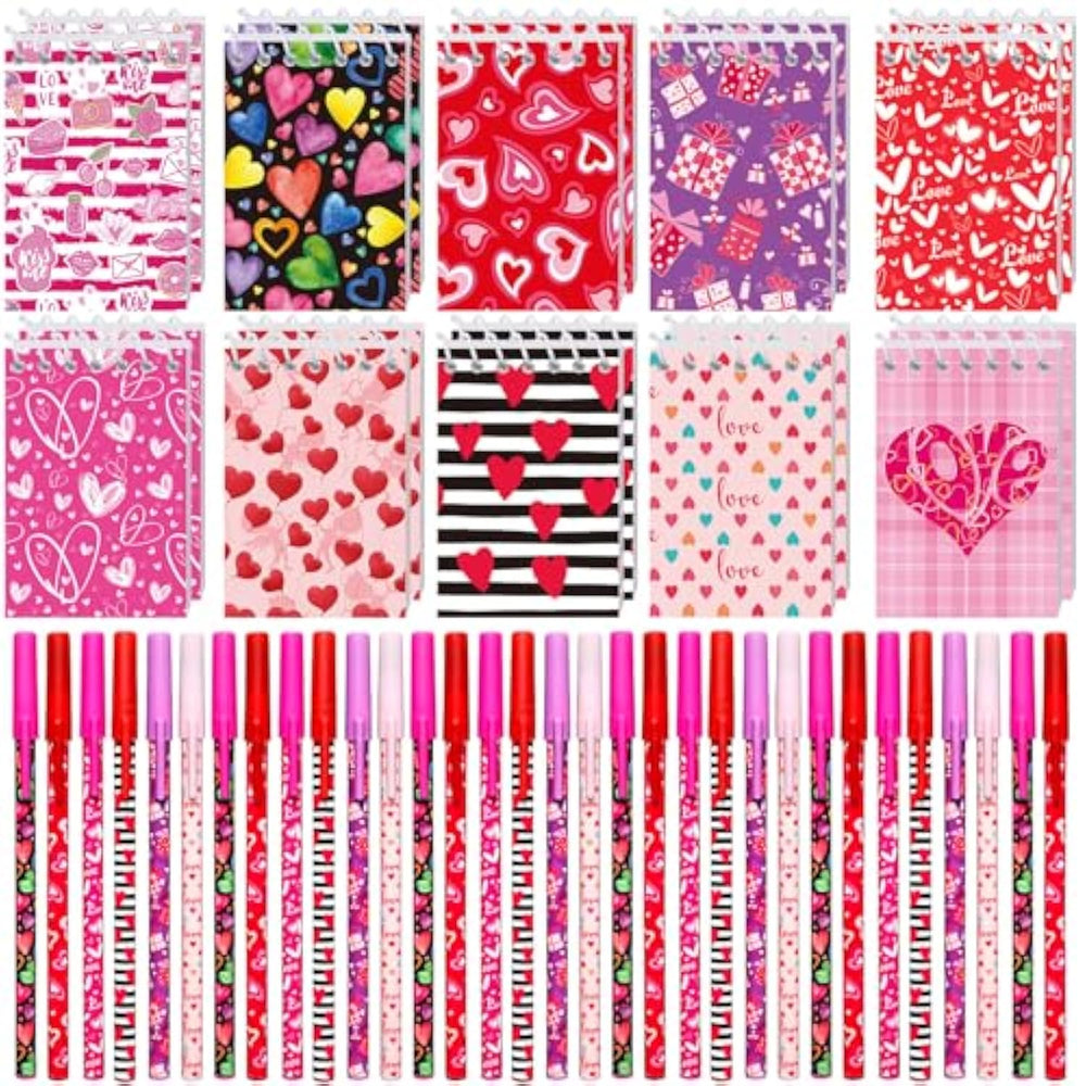 | Sufficient Quantity: You Will Receive 30 Exquisitely Designed Valentine'S Day Ballpoint Pens In 6 Styles, 5 Pieces For Each, And 20 Valentines Mini Notepads Bulk In 10 Styles, 2 Pieces For Each, Ensuring You Have Enough Pens And Notebooks To Use During Your Valentine'S Day Party | | Reliability And Longevity: Mainly Crafted From Quality Plastic And Reliable Paper, These Holiday Pens And Notebooks Are Designed For Longevity And Consistent Performance; The Resilient Material Ensures That The Pens Provide A Smooth Writing Experience And The Notebooks Can Stand Up To Frequent Use, Making Them A Good Addition To Your Festivities | | Versatile Size: The Valentine'S Day Ballpoint Pens And Notepads Come In Convenient Dimensions; With A Pen Size Of About 6.3 Inches/ 16 Cm, It Fits Ideally In Your Hands And The Mini Notepads Dimension Of About 2.36 X 3.54 Inches/ 6 X 9 Cm Fits Comfortably In Most Pockets And Purses, Offering Accessibility On The Go | | Great For Gift Exchange: Our Stationery Set Features Valentine’S Day Designs, Making It Ideal For School, Classroom, Office, Or Home Use. A Great Choice For Valentine’S Classroom Gift Exchanges, It Also Works Wonderfully As A Valentine’S Gift, Prize, Or Party Favor. Making It A Suitable Choice For Gifts, Favors, Or Personal Use | | Stylish Designs: Liven The Festive Season With Valentine'S Day Ballpoint Pens And Mini Notepads Available In Several Styles; The Colors Are As Brilliant As Shown In The Pictures, Whether They Are For Gift Giving, Valentine'S Day Party Favors, Or Personal Use, These Are The Desirable Holiday Accessories | |
