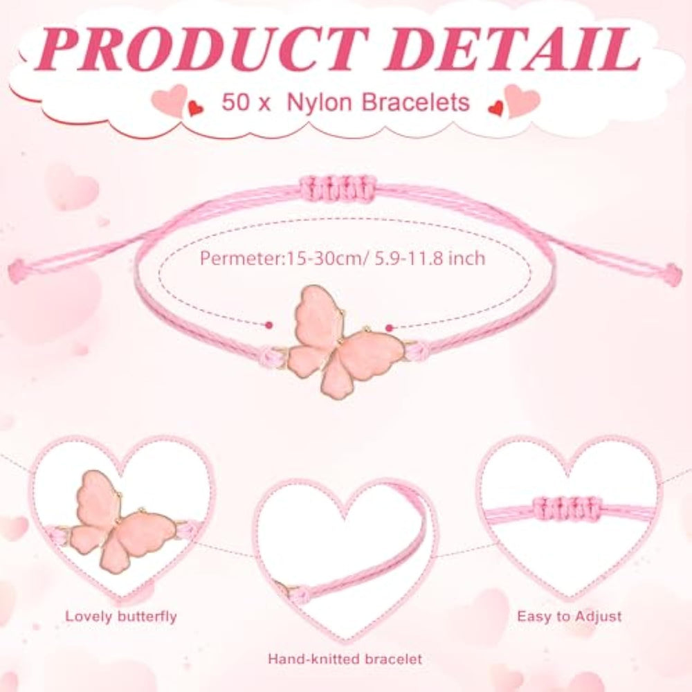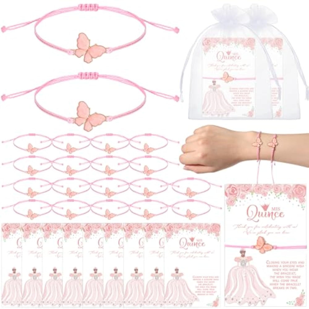 | Quinceanera Gift Set: The Quinceanera Gift Package Includes 50 Butterfly Wish Bracelets, 50 Thank You Cards And 50 Organza Gift Bags, Ample In Quantity And Delicate In Appearance, Offering Enough Party Favors For Your Needs For Use, Sharing And Replacement, Designed For Quinceanera Gift | | Proper Size: The Quinceanera Party Favors Butterfly Wish Bracelet Is Adjustable, Measuring About 6.3-12.6 Inches/ 16-32 Cm, Fitting Most Girls To Wear; The Thank You Cards Are About 3.15 X 4.72 Inches/ 8 X 12 Cm, With Clear Single Side Printing, Can Be Put In Our Organza Gift Bags To Be Served As Gifts To Guests Of Quinceanera Party, Adding A Touch Of Elegance | | Quality Material For Durability: The Quinceanera Butterfly Wish Bracelet Is Hand Woven Carefully, Can Be Adjusted According To Your Actual Size; The Thank You Cards Are Made Of 250G Coated Paper, Sturdy And Smooth, Safe And Reliable To Use And Gift | | Delicate In Design: Our Quinceanera Gifts Are Designed Carefully And Delicately, Well Matching With The Theme Of 15Th, 16Th Quinceanera Party, Can Easily Catch The Eyes Of Each Girl In The Party, Turning A Beautiful Celebration Into An Unforgettable One | | Ideal Party Favors: Our Quinceanera Party Favors Are Both Exquisite And Aesthetic, Vibrant In Colors, Can Withstand The Rigors Of A Lively Party, Ideal To Be Gifts For Guests Or 15 And 16 Years Old Girls For Quinceanera Parties And Birthday Parties | |