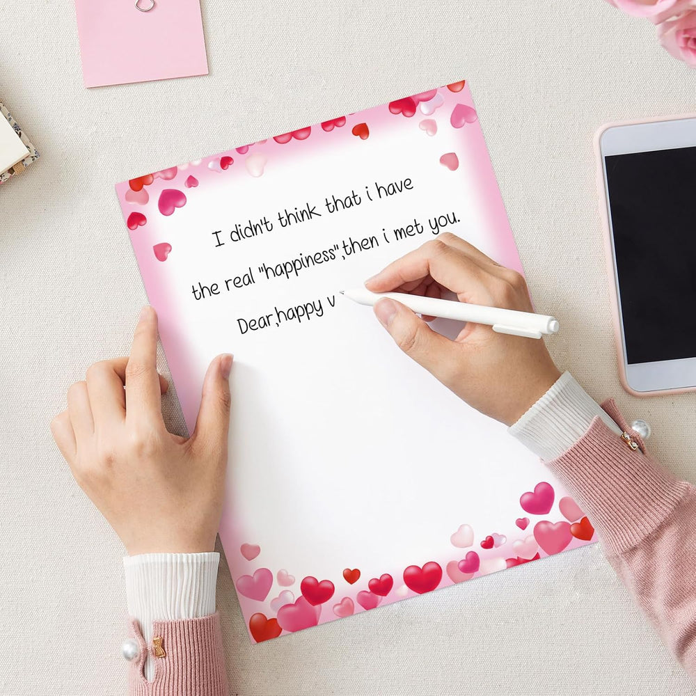 | Package Includes. 50 Sheets Valentine’S Day Theme Stationery Letterhead Paper. They Will Be Romantic Letterheads To Send To Your Family, Friends, Colleagues, Classmates, Etc. | | Romantic Heart Design. These Valentine’S Day Theme Letter Writing Paper Are Designed With Various Love Hearts, Mainly Colored In Red And Pink, Delicate And Romantic. | | Reliable Material. Made Of Premium Thick Paper For A Pretty, Professional, And Polished Finish, Not Easy To Fade Or Tear, Smooth And Fluent To Write. | | Proper Size. 8.5” X 11” Legal Size Letter Form Paper. Great For Handwriting And Printer Friendly, Compatible With A Variety Of Printers. | | Romantic Valentine Decorative Paper. Perfect For Letters, Valentine Greetings, Wedding Invitation, Certificates, Ideal For Anniversaries, Birthdays, Baby Announcements, Bridal Showers, Etc. | |