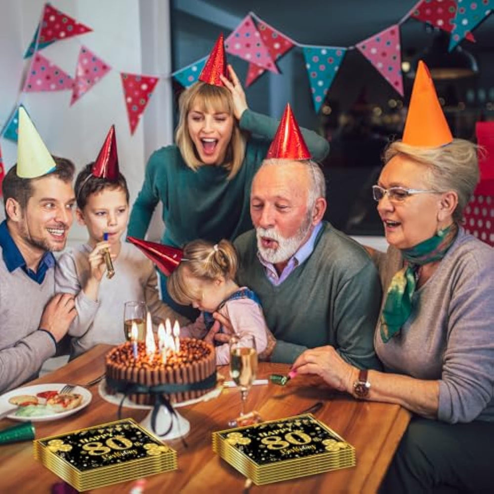 | Celebrate In Style: Set Of 50Pcs Premium Quality White Paper Napkins With Classic "Happy Birthday 80Th" Gold Foil Text And Dots, Perfect For 80Th Birthday Decorations For Gils And Boys | | Absorbent And Durable: Each 3-Ply Tissue Napkin Is Thick, Absorbent, And Gentle To Use, Ideal For Wiping Hands, Holding Hors D'Oeuvres, Or Cleaning Up Spills At The Party | | High Quality Materials: Made Of Biodegradable Paper, These Birthday Napkins Are Environmentally Friendly And Can Be Easily Recycled After Use | | Wide Applications: Pair These Happy Birthday Napkins With Other Decorations Like Cake Toppers, Party Supplies, Cups Of Beer, Or A Birthday Banner For A Fun And Classy Look | | Perfect Size: Napkins Measure 13 X 13 Inches When Unfolded And 6.5 X 6.5 Inches When Folded, Suitable For Both Birthday Napkins For Girls And Boys Celebrating Their 18Th Milestone | |