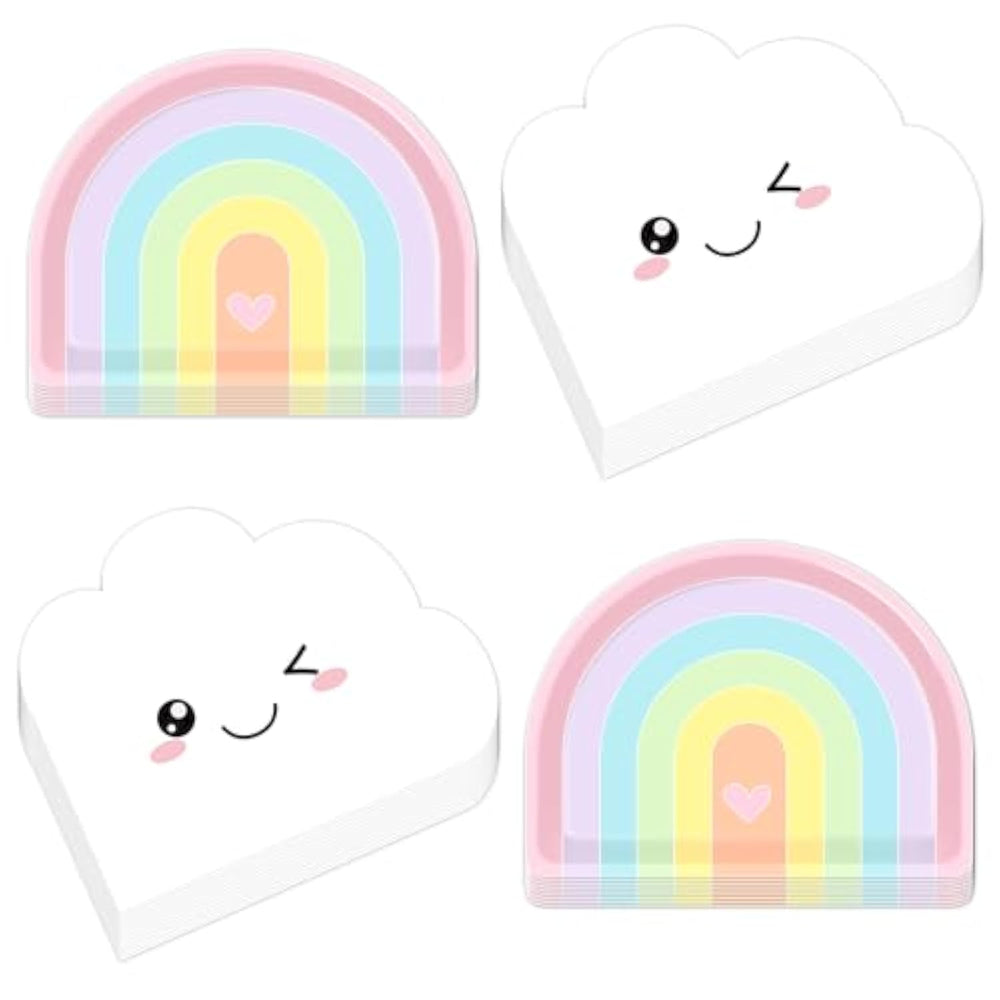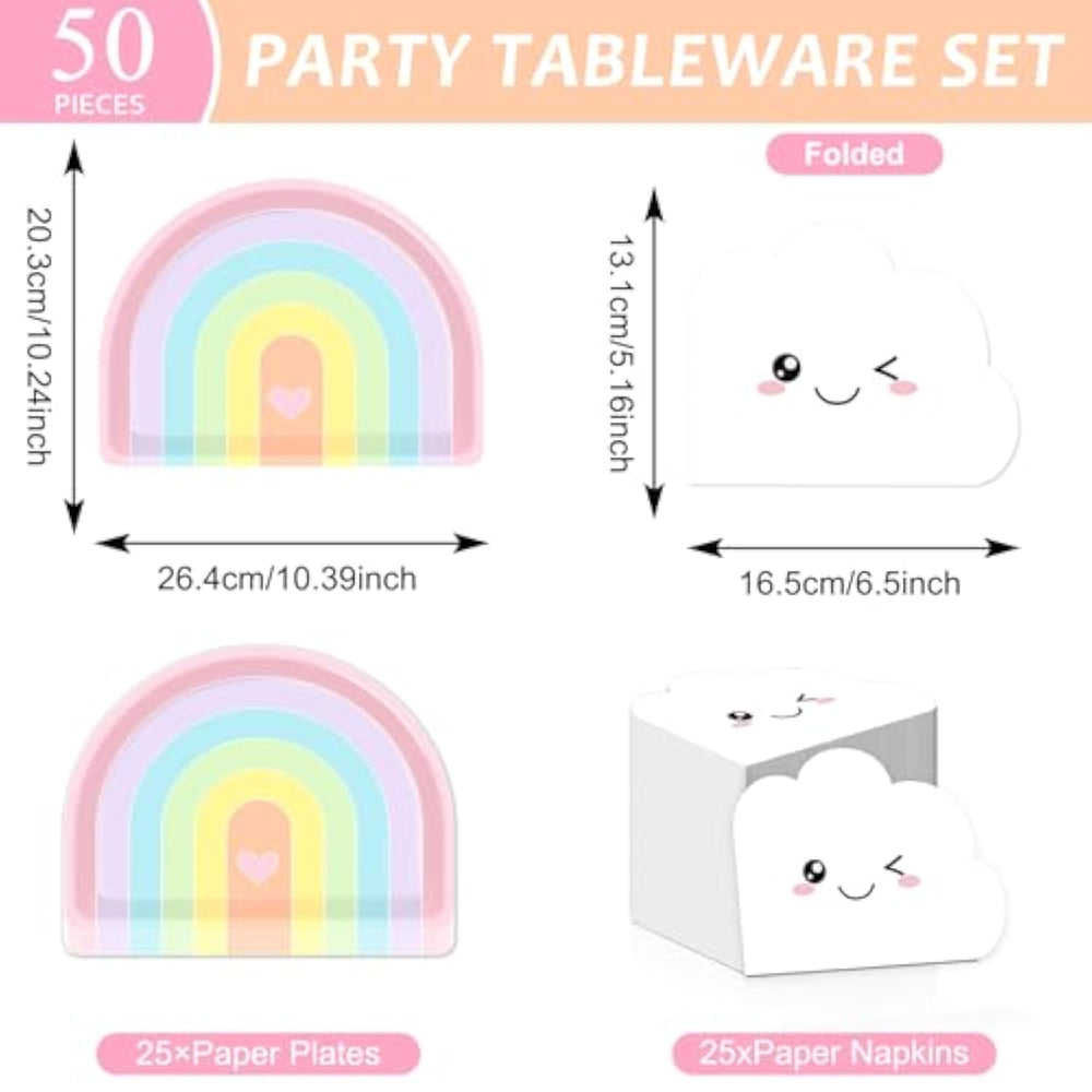 | Rainbow Cloud Party Decorations: This Boho Rainbow Plates And Napkins Serves Up To 25 Guests. It Includes 25 Rainbow-Shaped Paper Plates (8 X 10.4 Inches) And 25 Cloud-Shaped Napkins (5.2 X 6.5 Inches), For A Total Of 50 Pieces. Guests Will Love The Playful And Charming Design, Making It A Great Choice For Baby Showers, Birthdays, And Other Celebrations. | | Whimsical And Cheerful Design: The Happy Rainbow Birthday Decorations Feature A Soft Pastel Rainbow, Blending Gentle Hues For A Dreamy Look. The White Cloud Napkins, Shaped Like Fluffy Clouds, Have A Winking, Smiling Face That Adds A Playful Touch. Together, These Elements Create A Warm And Inviting Atmosphere For Any Gathering. | | High-Quality Materials: Made From Sturdy, High-Quality Paper, The Pastel Rainbow Plates Are Heat-Resistant And Odor-Free. The Cloud Print Napkins Are Soft, Durable, And Highly Absorbent, Making Them A Practical And Reliable Choice For Guests. | | Easy Cleanup: These Disposable Cloud Plates And Napkins Supplies Make Cleanup Quick And Effortless. When The Party Is Over, Simply Toss The Used Rainbow Cloud Plates And Napkins And Spend More Time With Family And Friends Instead Of Washing Dishes. | | Versatile For Many Occasions: Ideal For Rainbow Birthday Plates And Napkins-Themed Birthdays, Baby Showers, Weddings, Valentine’S Day, And Festive Celebrations. Whether Indoors Or Outdoors, This Set Adds A Delightful Touch To Any Event. | |