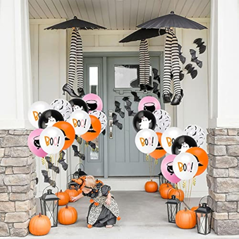 Bring spooky fun to your celebrations with this 50-piece Halloween Latex Balloon Set, featuring a mix of 10 white “BOO” balloons, 10 black ghost balloons, 10 pink kettle balloons, and 10 clear bat balloons, complete with 2 golden ribbons for decorating. Made from natural, non-toxic latex, these balloons are safe, durable, and can be filled with air to last up to 70 hours or helium for 3–4 hours of floating fun. Perfect for Halloween parties, themed events, trick-or-treat nights, or even baby showers with a spooky twist, these balloons are easy to inflate, tie, and arrange into arches, bouquets, or festive backdrops—making them a fun and eye-catching addition to any Halloween celebration.