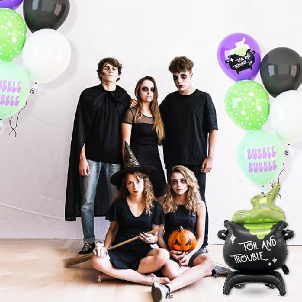 This Creative Halloween Balloon Kit is a fun and festive way to enhance any Halloween celebration. The set includes 1 giant cauldron foil balloon and 50 latex balloons in various colors: 5 black, 15 white, 10 green, 10 purple cauldron, and 10 light green “BOO” balloons, offering a mix of classic Halloween hues and playful designs. Perfect for Halloween birthday parties, baby showers, Trick or Treat events, or spooky-themed photo backdrops, these balloons instantly elevate both indoor and outdoor decorations. Made from high-quality, eco-friendly foil and latex, the balloons are odorless, non-toxic, and durable, resisting pops and deflation while maintaining their shape for long-lasting use. Easy to inflate with air or helium, they can reach up to 12 inches (latex) and 30 inches (foil), and can be arranged into garlands or other creative displays, allowing you to DIY your decorations with family and friends for a memorable, spooky-fun atmosphere.