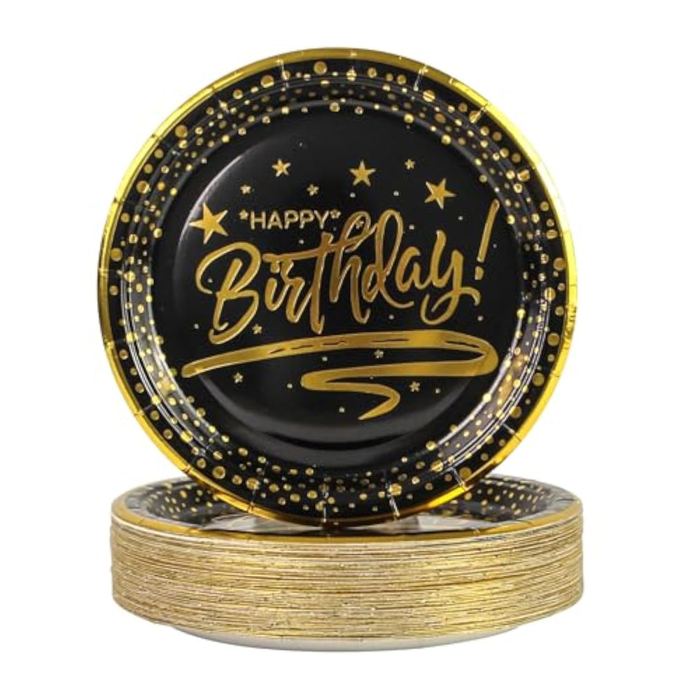 ?Value Pack?This Pack Of 50 7 Inch Black Gold Paper Plates Is Perfect For Serving Desserts, Appetizers, Cakes, Salads, Snacks, Fruits, And More. With Enough Plates To Accommo Up To 50 Guests, You'Ll Be Set For Any Birthday Celebration. | ?Durable And Safe Material?Made From High-Quality 100% Food-Grade Paper, These Plates Are Strong Enough To Hold All Kinds Of Food Without Folding Or Tearing. Plus, They Are 100% Safe And Harmless To The Human Body, Making Them The Perfect Choice For Any Occasion. | ?Elegant And Beautiful Design?Our Happy Birthday Paper Plates Feature A Black Background With Gold "Happy Birthday" Words And Playful Foil Polka Dots And Stars To Make Your Party Stand Out And Leave A Lasting Impression. | ?Convenient And Time-Saving?Disposable Plates Can Be Thrown Away After Use And Are Biodegradable. This Saves A Lot Of Time On Cleaning And You Can Have More Time For The Party! | ?Wide Application?Our Birthday Party Plates Are Not Only Perfect For Birthday Party Supplies, But They Can Also Be Used For Other Special Occasions Like Weddings, Baby Showers, And More. Add A Touch Of Elegance And Convenience To Your Next Event With Our Happy Birthday Paper Plates! |