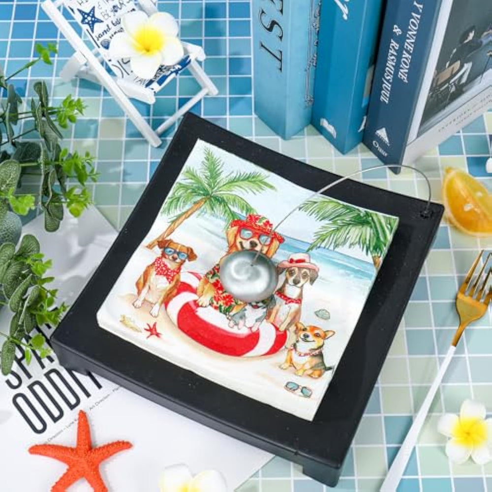 | What You Will Get: 50 Sheets Paper Luncheon Napkins Are Contained In The Set, Delicate Designs That Make It Suitable For The Use On Parties And Dinner Tables, And Large Quantity Are Enough For You To Use | | Tropical Theme: Patterned With Lovely Dogs, Tropical Trees Against Sea Background, Cute And Delicate, Great Supplies For Daily And Holiday Use | | Safe Material: Made Of Good Quality Paper, Soft And Degradable, Not Easy To Tear, And With 2 Layers That Makes Them More Absorbent, Keeping Your Plates And Tables Clean | | Proper Size: Our Dinner Hand Napkin Measures About 6.5 X 6.5 Inch When Folded, And 13 X 13 Inch When Unfolded, Which Is Proper For The Table And Other Occasions, To Decorate The Party Table And Help You Free From The Burden Of Cleaning At The Same Time | | Wide Application: Suitable For Summer, Baby Shower, Birthday And Other Occasions, Great For Dining, Hand Cleaning, Beverages, Etc., And Can Be Also Used As Ordinary Napkins For Your Home | |