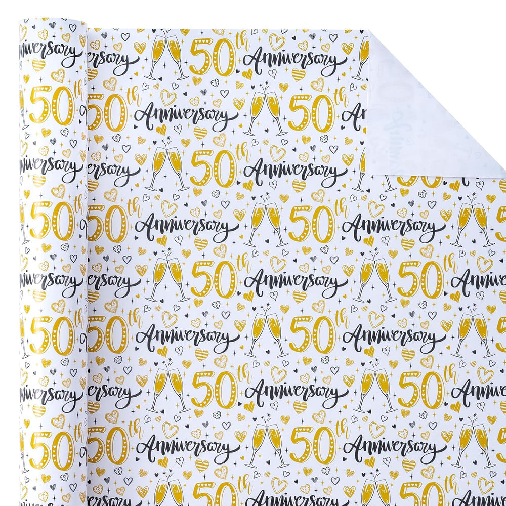| Perfect Size: Each Roll Measures 17 Inches Wide By 33 Feet Long. Design: 50Th Anniversary Design, Heart, Cheers And "Anniversary" Lettering Print, Will Make Your Gift Special And Shining. Premium Quality: Created With High-Quality Paper Materials, Thick And Not Easily Tear Or Rip. Item Came With Shrink Film To Prevent Wrapping Paper From Scratches And Reduce Dust. Use All Occasion: Perfect For Birthday, Wedding, Holiday, Party, Baby Shower Gifts Wrap. It Is Also Great For Craft Project.
