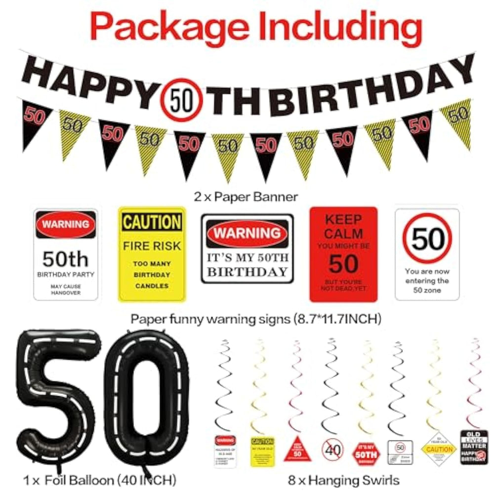 | [50Th Birthday Decor Kit] - Our 50Th Birthday Party Decorations Set With Caution Logos In Black, Yellow And Red Includes 1Pc "Happy 50Th Birthday" Banner, 1Pc Triangle Banner, 8Pcs Hanging Swirls, 5Pcs Yellow Wall Signs And Number "50" Balloons. Enough Quantity To Meet Your 50Th Birthday Party Decorating Needs And Perfectly Decorate Your 50Th Bday Party | | [Large 50Th Bday Background] - "Happy 50Th Birthday" And Triangle Banners Need To Be Assembled, Hanging Them On The Wall, Door Or Anywhere With Balloons, Hanging Swirls To Form A Beautiful Backdrop For The Perfect Photo Shoot. Take Some Beautiful Photos Of This Special Day And Make Deep And Cherished 50Th Birthday Memories | | [Widely Used] - Perfect For 50Th Birthday Party, Dad/Mom 50 Birthday Party, Or Funny 50 Years Old Bday Party. Decorate Your Home, Room, Or Outdoors On This Special Day, Create A Wonderful Atmosphere, And Have A Happy And Memorable Day | | [As 50Th Birthday Gift] - Our Caution Logos 50Th Birthday Decorations Kit Is The Best 50Th Birthday Gift For Dad, Mom, Friends And Family. Give It As A Gift To Her/Him Or To Yourself And Create A Surprise For A Great Day | | [Durable Material] - The 50Th Birthday Decor Is Made Of High Quality Material, Sturdy, Lightweight And Easy To Carry; The Text Pattern Is Clearly Printed And Easy To Read, Making It A Fun 50Th Birthday Party Decoration | |