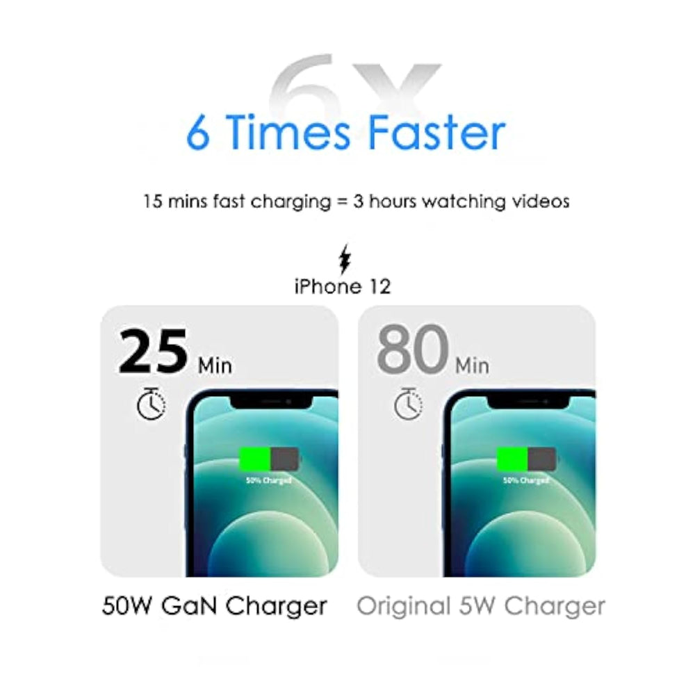 | 50W Max Super Fast Charging?: Fast Charging Iphone 13 From 0% To 70% In 30 Minutes, 6 Times Faster Than Original 5W Charger. When You Use Single Port, Type-C1 Or Type-C2 Output Up To Pd 50W Max And Pps 48W Max (Pps 3.3-16V/3A).. | | Dual Port Usb Wall Charger?: 2 In 1 Convenient Usb C Charger, Fast Charging Your Two Phones, Tablets Or Other Usb-C Devices Simultaneously At Full Speed. And When You Use Two Ports At The Same Time, Type-C1 + Type-C2 Output: Type-C1 Up To 30W Max, Type-C2 Up To 20W Max. | | Usb C Laptop Charger?: Suit For Charging Usb C Laptops Such As Macbook, Dell, Acer, Hp, Lenovo, Thinkpad That Have 45W And 50W Charge. A Mini Wall Charger Also Can Charge A Laptop, Easy To Carry, Instead Of Carrying A Origin Big And Heavy Laptop Charger. | | Newest Gan Iii Technology?: Gallium Nitride (Gan) Is A Kind Of New Semiconductor Material, Has High Thermal Conductivity, High Temperature Resistance, Radiation Resistance, Acid And Alkali Resistance, High Strength And High Hardness, Etc. And Smaller, Lighter, Safer And More Efficient Than Other Old Cheap Silicon Charger. 50% Smaller Than Original 18W Charger. | | One For All Your Devices?: Pd 3.0 Usb C Power Adapter Is Compatible With Iphone 13/13 Pro/13 Mini/13 Pro Max/Iphone 12/12 Mini/12 Pro/12 Pro Max/Iphone 11/11 Pro/11 Pro Max/Xs/Xsmax/Sr/8/8Plus, Ipad, Samsung Galaxy, Google Pixel And More.(Cable Not Included) | | All Round Safety Protection?: Usb Charger Block Is Made Of Pc Fire-Proof And Heat Resistant Material, With Built-In Intelligent Chip, Protect The Charger And Your Devices From Against Short-Circuit, Over-Current, Over-Temperature, Over-Charging And Over-Heating. | |