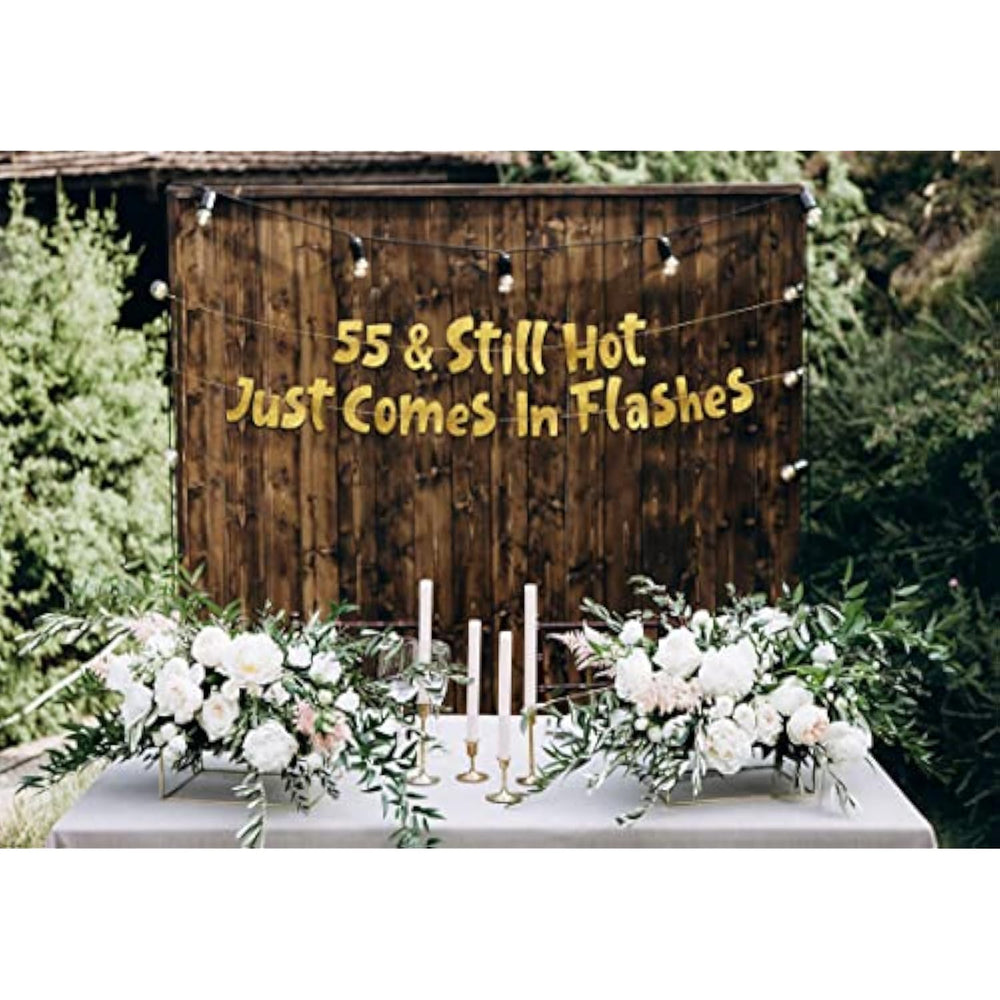 | Banner Comes Pre-Strung | | Cheers To 55 Years! What Better Way To Celebrate Than With Our Hand Strung, Premium Quality 55Th Birthday Banner. This Banner Is The Perfect Decoration To Add A Touch Of Classy Decor And Welcome Your Guests To The Occasion. | | Quality: The Beautiful, Gold Glitter Accents Matches The High Quality Lettering And Will Definitely Catch The Attention Of Your Loved Ones. Our Happy Anniversary Sign Is Meant To Be Reused...So Put It In The Drawer Until Someone Else Hits 55! | | Size: Banner Is Petite And Measures Approximately 7.5 Feet. First Great Above A Dessert Table Or Fireplace Mantle. | |
