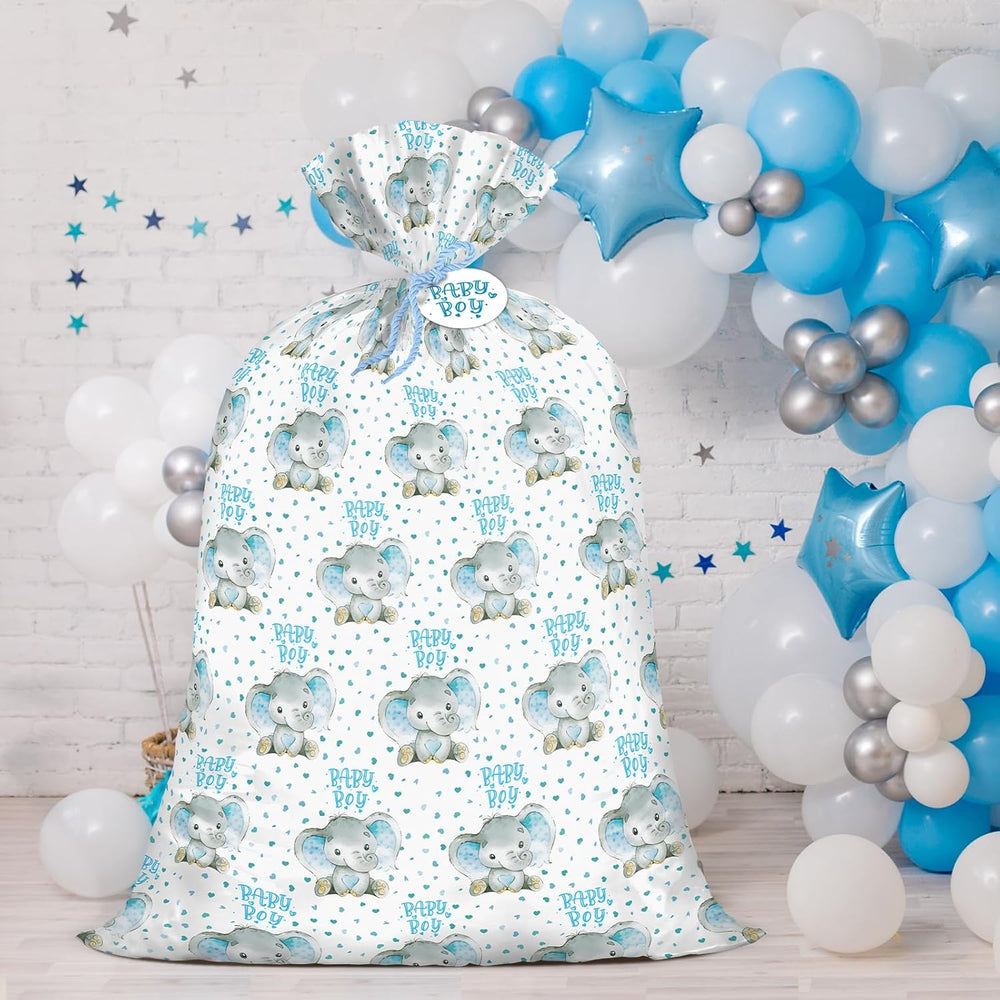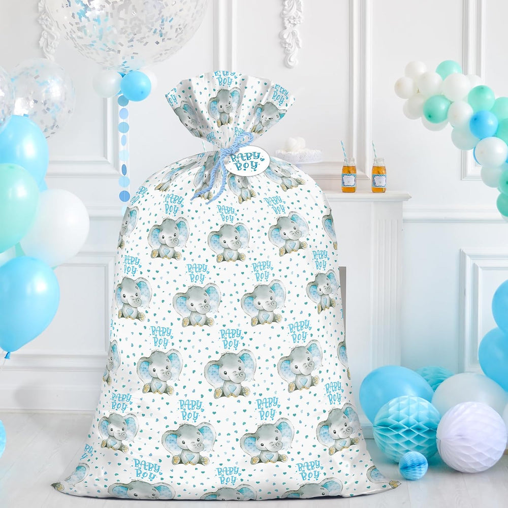 | High Quality: Well Made And Heavy Duty Plastic Bag. Not Only Thick But Also Sturdy, Absolutely You Will Can'T See Through It. Size: The Package Includes 1 Pcs Bag+1 Gift Tag+1 Tie. Each Large Plastic Gift Bag Measures 36" Wide X 56" High. Babyboy Design: Aorable Blue Elephant And "Baby Boy" Lettering Printed, Perfect For Baby Shower, Kid'S Birthday Gift Wrap. Perfect For Giant Or Clumsily Shaped Gifts That Are Too Difficult To Wrap With Wrapping Paper. It Is Definitely Cuter Than Plain Garbage Pack And You Will Like It. Quality