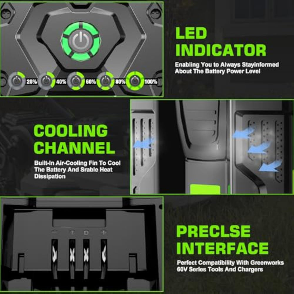 ??[ New Upgraded 4X Longer Runtime ]??: Type: Lithium-Ion | Voltage: 56V | Capacity: 5000Mah | Watt: 280Wh | 1* Battery Holder(Offers 4X More Power Than The Original Ego 56V 2.5Ah Battery,Makes Your Tools More Runing Time) | | ??[ Perfect Replacement?100% Compatible ]??: Perfect Replacement For Ego 56V T Ba4200 Ba4200T Ba1400 Ba1400T Ba5600T Ba2240 Ba1120 Battery, 100% Compatible With Ego 56V Cs1604 Cs1804 Cs1403 Ht2400 Lb6504 Lb5804 Lb6500 Lb4800 Hta2000 Sta1500 Ph1400 Psa1000 Tools,Perfect Fit All Ego 56V Chargers And 56V Tools.?Not Fit Ego Nexus Portable Power Station Pst3040/Pst3041/Pst3042? | | ??[ Longevity Enhanced?Smart Protection ]??: With A Recharge Cycle Of 1000 Times And A Mere 1% Self-Discharge Rate, The Replacement For Ego 56V Battery Ensures Flawless Operation For Up To 5 Years. Enhanced By A Battery Management System (Bms), It Provides Effective Protection Against Potential Damage From Short Circuits, Overcharging/Discharging, Over-Voltage, And O.