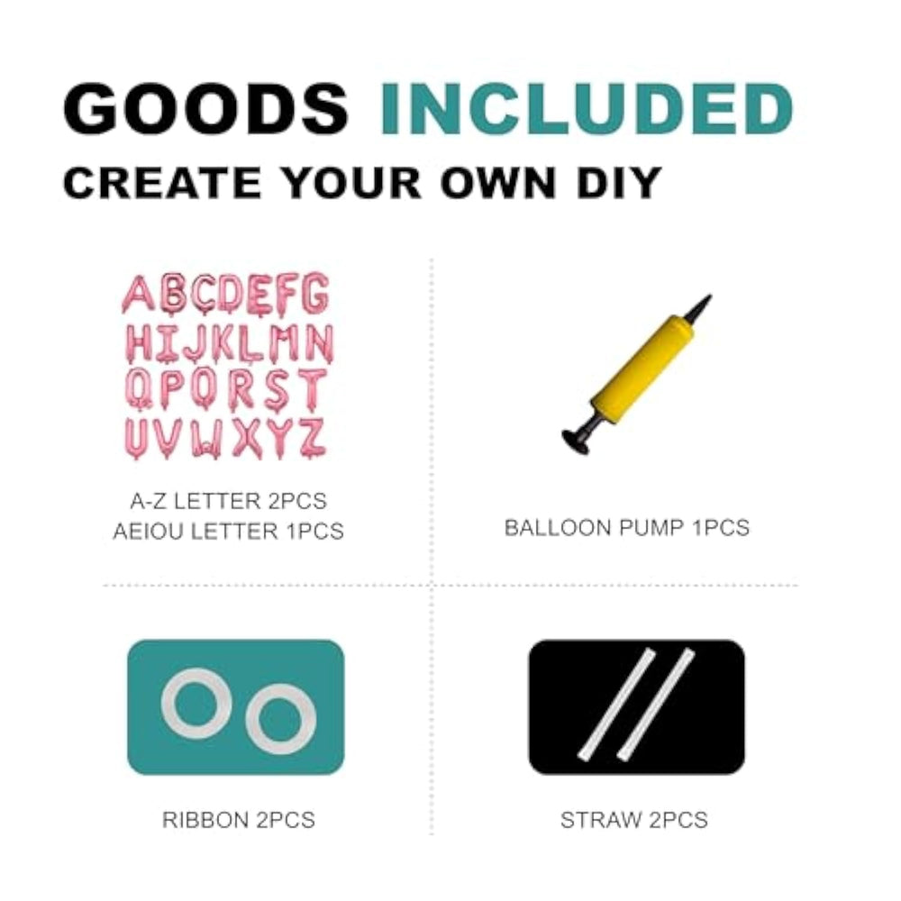 | Packed With Variety Got 57 Letters Here, Including 3 Of A, E, I, O, U, 2 Of B, C, D, F, G, H, J, K, L, M, N, P, Q, R, S, T, W, X, Y, Z, Plus, 2 Ribbon Rosettes, A Pump, And Straws. | | Personalized Fun Spell Out Names, Messages, Or Initials Like "Happy Birthday" Or "Congratulations" For Any Event. These Shiny, Durable Balloons Add A Festive Vibe, Making The Place Lively And Joyful. | | Long - Lasting Party Pleasers These Foil Balloons Stay Up For 3 - 7 Days, Or Even A Month If You Store Them Well. No Need To Keep Changing Decor, Saving You Time And Money. | | Easy Peasy Just Use The Pump To Inflate, Then Press The Self - Sealing End. | | Versatile And Chic Perfect For Birthdays, Valentine'S, Weddings, Engagements, Bridal Showers, Graduations, Family Gatherings, Baby Showers, Bachelor Parties, Classrooms, And More. Add A Personal Touch To Any Event, Leaving Guests With Lasting Impressions. | |