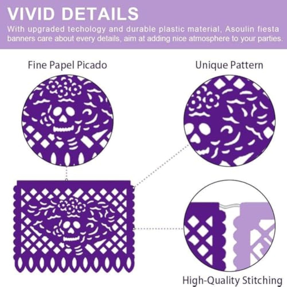 | Papel | | Multi-Use: Our Papel Picado Banner Is Perfect For Mexican Themed Party Decorations, Birthday, Baptisms, Weddings, Retirements, Anniversaries, Fiestas, Cinco De Mayo, Independence Day, Dia De Muertos, Sporting Events, Bridal Showers, Graduation, Engagement, Gender Reveal, First Communion, Baptism, Confirmation, Classroom, Lawn, Cocktail Retirement Parties, Posadas, Day Of The Dead, Etc. Excellent Mexican Party Decorations Will Decorate Your Every Good Time | | Innovative Design Perfect Color: There Are Many Kinds Of Designs For Reference Such As Guitar, Skull, Sun, Flowers, Fruits, Cactus, Etc. These Fiesta Banners Have The Perfect Colors To Match Your Fiesta Spirts. Include Red, Yellow, Pink, Purple, Blue, Orange, Green And So On. Place Fiesta Party Decorations To Make Your Party More Unique And Attractive | | Durable Plastic Materials Reusable: These Banner Decoration For Party And Independence Day Decorations Are Handmade And Made Of High-Quality Plastic Material, They Are Lightweight, Durable And Reusable, Odorless. A Set Of Papel Picado Banner Can Serve You For A Long Time | | Easy Using Storage: Just Hang Mexican Birthday Decorations Using The Attached String. Let Your Imagination Run Wild And Create An Unforgettable, Fun Atmosphere. Birthday Party Decorations Can Be Easily Stacked Away | | Cinco De Mayo Decorations Set: This Dia De Los Muertos Banner Set Is Designed With Guitar, Sun, Flowers, Fruits, Cactus And Skulls, Which Is Great Cinco De Mayo Decorations Mexican Themed Party Decorations. Just Hang Cinco De Mayo Flag Up In Doorways, Backyard, Terrace, Kitchen, Trees Or Windows To Experience The Astounding Festival Atmosphere It Creates | | Satisfaction Service: We Will Be Always Stand Behind Our Products. Please Don’T Worry! If You Are Not Completely Satisfied With Our Picado Banner, Please Feel Free To Send Us Your Issues. We'Re Always Happy To Hear From You And Answer Questions! Just Choose Mexican Party Banners To Make The Party More Festive | |