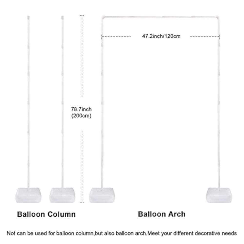 Easy Assembly: Comes With Instructions For Easy Installation And Decorating With Balloons. | Multi-Purpose: Can Be Used As A Balloon Arch Stand Or Balloon Column Stand For Parties. | Durable Construction: Made From Premium Pvc Material That Is Strong And Resistant To Scratches. | Versatile Usage: Ideal For Parties, Weddings, Birthdays, Baby Showers, Graduations, And Other Celebrations. | Complete Set: Includes 13 Pvc Poles, 2 Bases, 2 Water Bags, 10 Pole Connectors, 2 Corner Connectors, 60 Balloon Rings, 2 Rolls Of Balloon Tape, 2 Rolls Of Balloon Glue, And An Instruction Manual. |