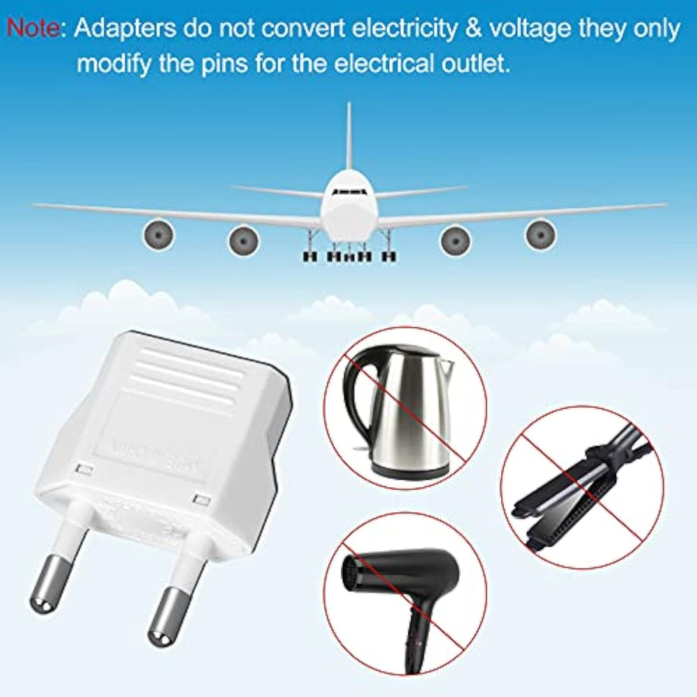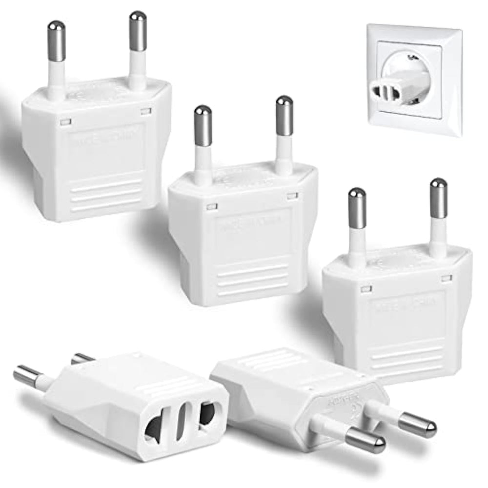 | Safe Reliable: Our European Plug Adapter Is Of Safe Pure Copper Conductor And Abs Flame-Retardant Material. No Deformation, With Strong Elasticity, To Put An End To Safety Risks. Voltage Current: 6A/125~250V. Maximum Power: 600 W. | | Easy To Carry: European Plug Adapter Power Converter Is Small And Lightweight For Luggage And A Briefcase For Travelers And Businessmen. It Is The Perfect Choice For Travel. | | Wide Range: Will Fit All European Outlets Including The Modern Hexagon Outlets. They Work In Germany, France, Spain, Portugal, Sweden, Norway, Belgium, And The Netherlands To Name A Few. And Also Work Great In Both Italian And Swiss Sockets! | | Multi-Purpose: These Travel Adapter Europe Are Very Small Electrical Adapter Plugs That Can Be Used To Charge Smartphones, Bluetooth Speakers, Razors, Power Boxes, Laptops, Tablets, And More. | | What You Get: 6 Pack European Plug Adapter (White), Our 7*24 Friendly
