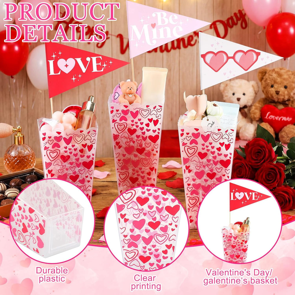 | Valentine'S Day Gift Box Set: Includes 6 Exquisite Transparent Plastic Valentine'S Day Gift Boxes And 6 Matching Decorative Flags; This Complete Gift Basket Set Makes It Convenient For You To Wrap Gifts For Parties; It'S The Ideal Combination For Holding Small Party Gifts, Candies, Or Other Items During Valentine'S Day Celebrations | | Exquisite Design: These Valentine'S Day Gift Baskets Feature A Primary Color Scheme Of Red And Pink, Adorned With Elegant Heart And Line Patterns; They Are Eye-Catching And Add A Sweet Ambiance To Your Celebrations; The Transparent Design Allows For Easy Storage And Viewing Of The Contents Inside; Perfect For Holding Popcorn, Chocolates, Cookies, Or Other Small Gifts, Enhancing Visual Appeal | | Material And Size: The Valentine'S Day Heart-Shaped Gift Boxes Are Made Of Plastic, Which Is Sturdy, Durable, Odorless, And Retains Its Shape After Repeated Use; The Dimensions Are Approximately 4 X 7.5 Inches/ 10 X 19 Cm, Capable Of Accommodating Most Gifts For Your Guests, Such As Cookies, Fruits, Candies, And More | | Enhancing Valentine'S Day Decorative Flags: Includes Six Valentine'S Day Flags, Each Measuring Approximately 5.5 X 11.8 Inches, With Three Exquisite Designs, Two Of Each Kind; These Festive Flags Beautifully Decorate The Gift Baskets, Adding A Finishing Touch To Your Gift Packaging And Creating A Wonderful Festive Atmosphere | | Versatile Use: Our Valentine'S Day Gift Boxes Are Suitable For Valentine'S Day, Galentine'S Day, Weddings, Anniversaries, Or Any Other Valentine'S-Themed Events; They Can Be Applied To Hold Candies, Snacks, Or Distribute Gifts; They Create The Perfect Festive Atmosphere And Add A Touch Of Elegance To Any Celebration | |