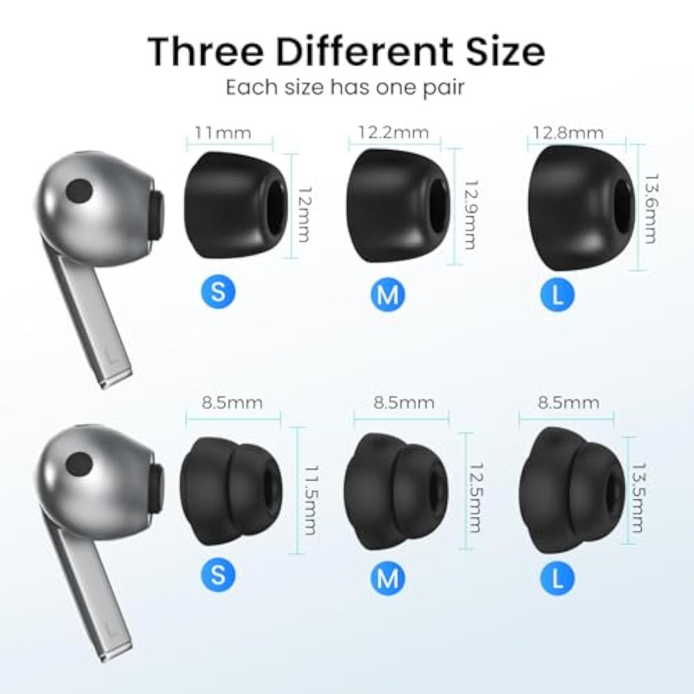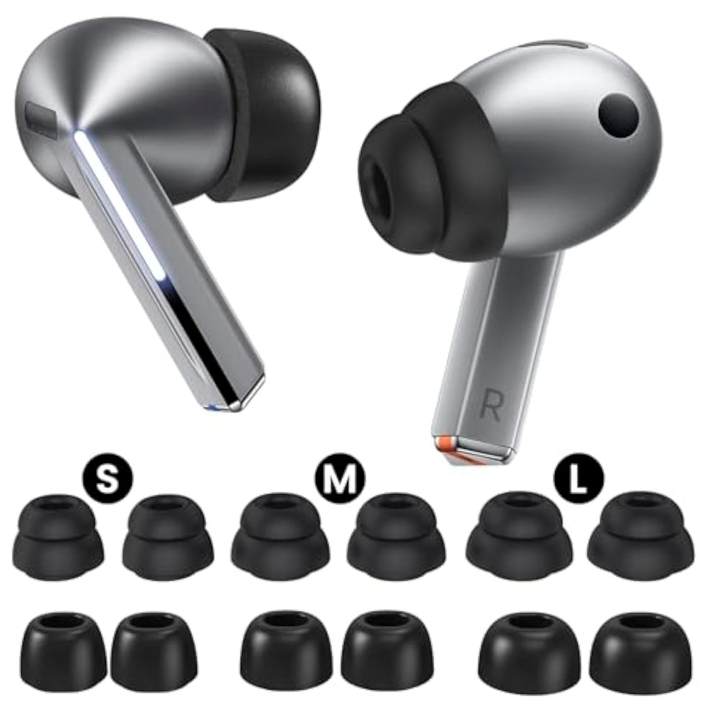 | Compatibility: These Ear Tips Set Only Compatible With Samsung Galaxy Buds 3 Pro 2024 Release, Not For Galaxy Buds2 Pro, Galaxy Buds Pro And Other Models | | Dual Material Variety: This Set Offers A Combo Of 3 Pairs Of Memory Foam And 3 Pairs Of Double Flange Silicone Ear Tips In Sizes S/M/L, Allowing Users To Choose Between Cushioned Softness Or Secure Fit Based On Their Listening Preferences | | Enhanced Sound Isolation: Memory Foam Tips Provide Superior Noise Isolation, Letting You Enjoy Your Music Without Distractions, While Double Flange Silicone Tips Create A Snug Seal For An Immersive Audio Experience | | Dust Guard Screen Protection: Each Galaxy Buds 3 Pro Ear Tip Has A Built-In Dust Guard Screen, Which Helps Keep The Earbuds Clean And Free From Dust And Debris, Enhancing The Longevity Of Your Device | | Durable And High-Quality Materials: Made From Premium Silicone And Memory Foam, These Ear Tips Are Not Only Comfortable But Also Durable, Ensuring They Withstand Daily Use While Retaining Their Shape And Performance | |