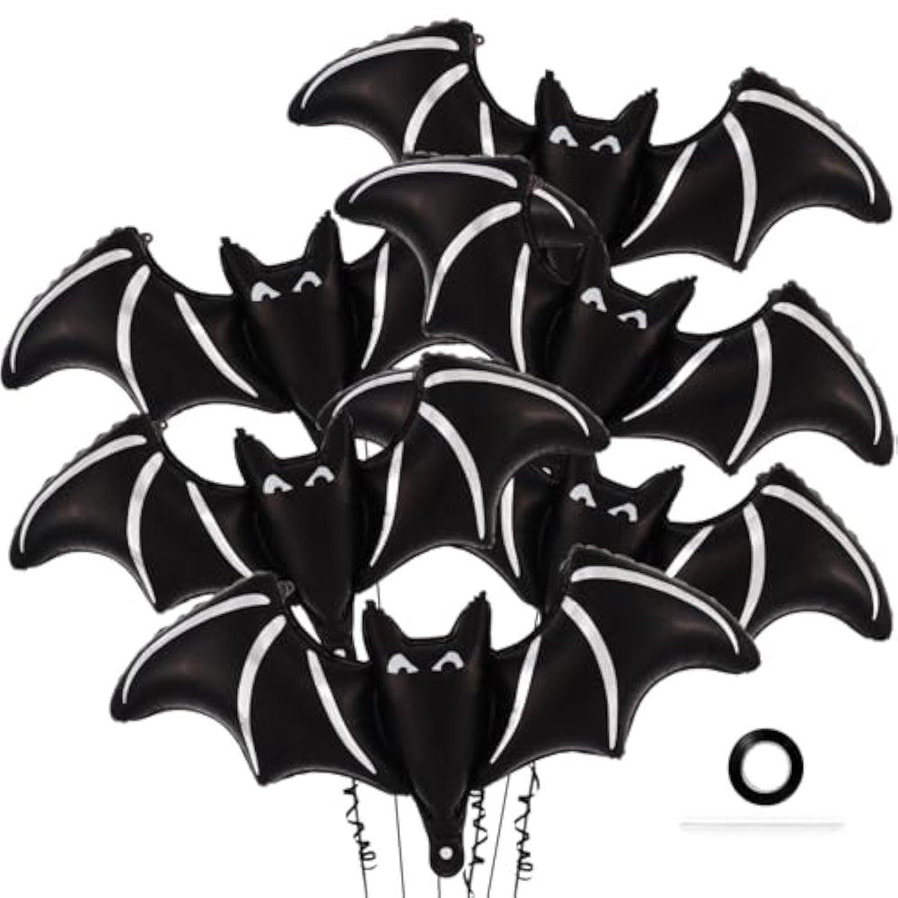 | Package Includes: You Will Receive 6 Pcs Giant Black Bat Balloons, A Roll Of Black Ribbon, And A Straw, Each Measuring Approximately 48 Inches In Size. The Quantity Is Sufficient And The Style Is Realistic, Perfect For Halloween Party Decoration. | | High-Quality Materials: Our Halloween Party Balloons Are Made Of High-Quality Foil Material, Which Is Durable, Safe And Environmentally Friendly, Not Easy To Crack And Fade, Lightweight, Easy To Hang And Carry, Self Sealing Design, Reusable, And Easy To Store For A Long Time. | | Halloween Themed Party Decoration: Our Halloween Foil Balloons Are Designed With Various Halloween Horror Elements, Which Look Very Realistic And Suitable For Halloween Themed Parties, Horror Themed Parties, Birthday Parties, And More. They Can Create A Lively And Exciting Atmosphere For Your Guests. | | Easy To Use: Just Use A Straw Or Air Pump To Inflate The Bat Balloon. After Filling, Flatten The Expansion Port And Automati