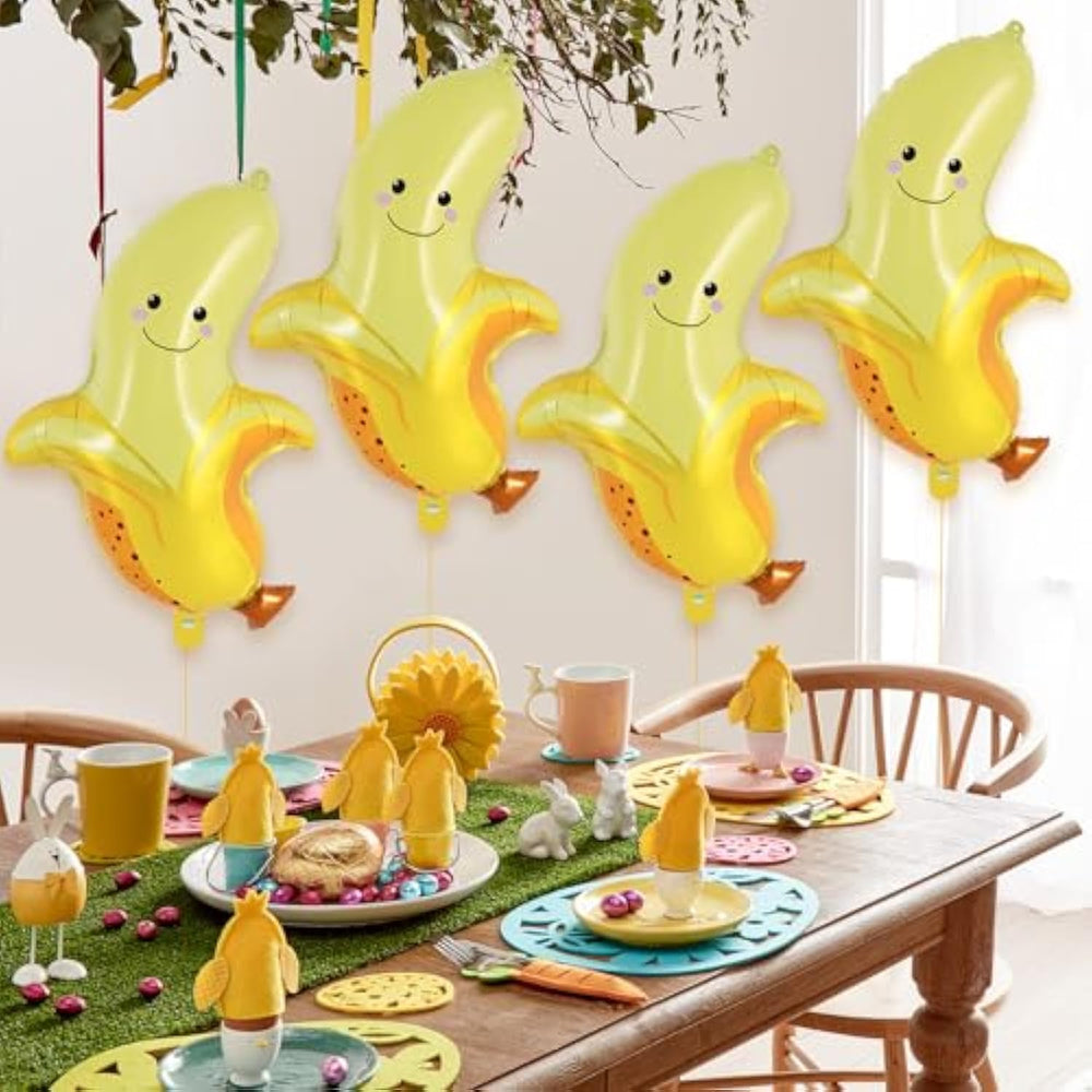 | Package Contains: You Will Get 6 Pcs Banana Balloons With Cute Banana Shape And 1 Roll Ribbon To Tie These Balloons. The Balloons Are Around 28 Inch In Length And 19.5 Inch In Width; The Ribbon Is Around 32.8 Feet Long. | | Easy To Use: By A Balloon Pump, These Banana Balloons Are Easy To Be Blown Up With Air Or Helium, And They Can Stay Inflation For Days. With The Ribbon Provided In The Package, You Can Hang These Balloons And Decorate Your Unique Parties. | | Sweet Banana Design: The Banana Foil Balloons Are Designed As Sweet Banana Shape. They Look Like Huge Realistic Banana. They Are Bright In Color, Beautiful In Appearance, Energetic And Vigorous, Will Definitely Loved By Kids! | | Great Party Decoration: The Banana Balloons Are Excellent Supplies For Many Party Occasions, Such As Banana Themed Party, Birthday, Baby Shower, Gender Reveal. The Cute Banana Can Make Your Party More Splendid And Joyful. | | Tips For Banana Balloon: When Blowing Up The Banana Balloon Until It Is Around 90% Full, It Presents The Best Look. Please Do Not Fill Too Much Air Or Helium Into The Balloon, Which May Cause The Balloon To Explode. | |