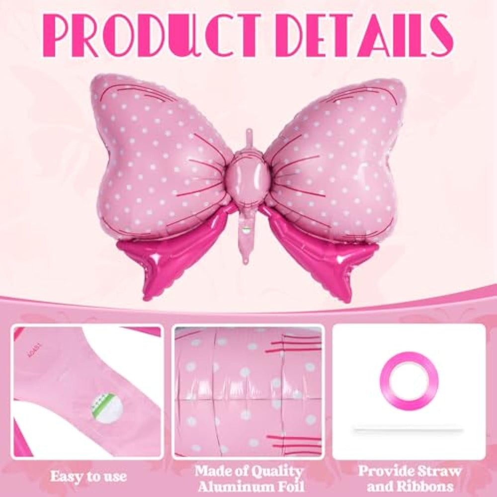 Pink Bow Balloons: You Will Get 6 Pcs 35*24 Inch Pink Bow Foil Balloons,1 Pc Pink Ribbon And 1 Pc Straw,Enough Quantity For You To Decorate Your Party.The Pink Color Is Very Eye-Catching And Beautiful, Which Can Add A Touch Of Elegance And Romance To Any Party | High Quality Material: Our Pink Bow Balloons Are Made Of High-Quality Foil Material, Which Is Durable And Long-Lasting. They Are Also Non-Toxic And Safe For Children To Play With. Easy To Hang And Carry, Self Sealing Design, Reusable, And Easy To Preserve For A Long Time. | Party Decorations: Our Pink Bow Balloons Are Perfect For Creating A Festive Atmosphere At Any Party. You Can Use Them To Decorate Tables, Chairs, Walls, And Ceilings. The Balloons Are Also Great For Photo Shoots, As They Can Create A Beautiful Backdrop For Your Photos. | Easy To Use: These Pink Bow Balloons Are Easy To Inflate With A Balloon Pump Or Air. They Come With A Straw For Easy Filling And A Self-Sealing Design To Prevent Air Leaks. This Makes Them Convenient To Use And Ensures That They Stay Inflated For A Long Time. | Wide Application: These Pink Bow Foil Balloons Are Perfect For Gender Reveal Parties, Birthday Parties, Baby Showers, Wedding Decorations, And More. You Can Also Combine Them With Other Balloons To Create A Beautiful Balloon Bouquet.And They Can Be Used As Photo Props, Room Decorations, Party Decorations, And Outdoor Decorations. |
