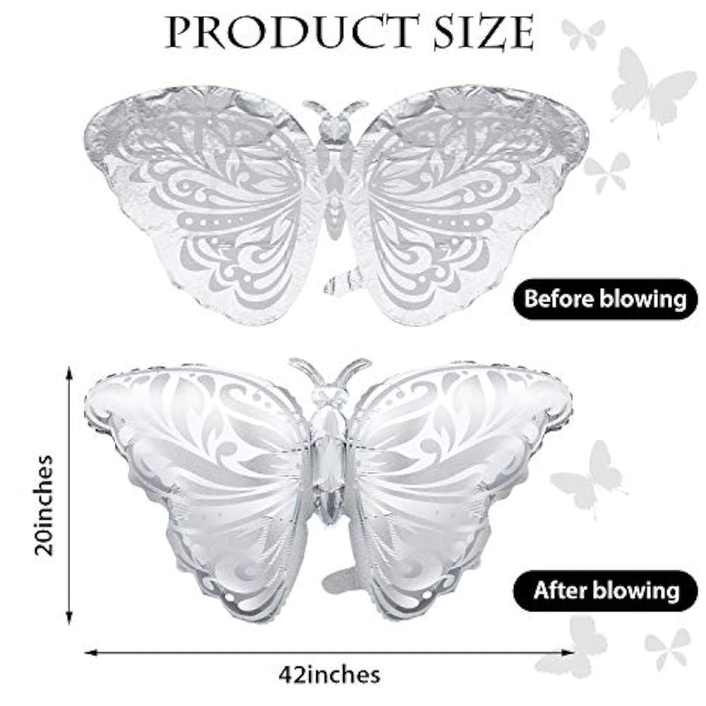 | What You Will Get: Package Comes With 6 Pieces Butterfly Foil Balloons In Silver, You Can Use Them To Decorate Your Various Party, Which Will Make Wonderful Memories For Your And Your Family Members | | Quality Material: Those Butterfly Balloons Are Made Of Quality Aluminum Foil Rather Than Ordinary Plastic, The Surface Has Metallic Luster, Uniform Color, Beautiful Spherical, Besides, They Can Be Applied Repeatedly Because It’S Convenient To Inflate And Deflate | | Easy To Use: Slowly Fill The Nozzle With Air, When The Balloon Is Nearly 90% Full, Reduce The Amount Of Air And Slow Down The Rate Of Filling; Be Careful Not To Fill The Gas Too Full, After Filling, Gently Knead The Seal With Your Finger | | Butterfly Design: These Balloons Feature The Shape Of A Flying Butterfly, Which Is The Symbol Of Happiness And New Life, Every Butterfly Can Break Through, Flutter And Fly One Day; Beautiful Butterfly Balloons Can Bring Your Party Special Meaning | | Occasion: Wonderful For Various Parties, Such As Valentine’S Party, New Year Party, Wedding Party, Birthday Party, Anniversary Party, Also A Great Way To Decorate Shopping Mall And Your Home With Them | |