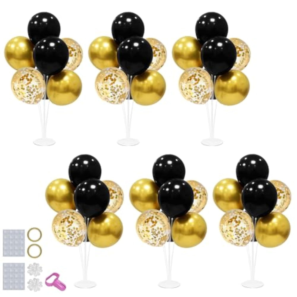 | What Inlcude: This Balloon Stand Kit Include 6 Set Balloon Holders, 54 Pcs Balloons - Black And Gold Balloons, Gold Confetti Balloons, 2 Pcs Balloon Clips, 2 Rolls Ribbons, 2 Pcs Glue Dots And 1 Pc Tie Tool | | Occasions: This Balloon Stand Table Top Decor Is Nice Centerpiece Table Decoration For Parties Like Birthday, Graduation, Bridal Shower, Engagement, Wedding, Anniversary, Retirement, Father'S Day, Mother'S Day, Halloween, Christmas, New Years Decorations 2025 | | Quality: The Balloons Size 12 Inch, Weight 2.8 Grams But Not 2.2G Or 2.5G. We Suggest Blow Within 11" Inch But Not Blow Over Size To Avoid Pop. Bases We Use Thick Style - Weight Over 50 Grams, More Stable Than Regular 35 | | Assemble: Will Come With Printing Instructions. Is Not Hard To Put Together. While If You Do Not Assemble Balloon Stands Before, Please Prepare It Little Earlier Before Party | | Others: We Are Party Item Factory And We Have Our Own Inspection Department. While If There Is Still Any Problem From These Balloon Stands, We Will Reply And Provide Solution Within 24 Hours | |
