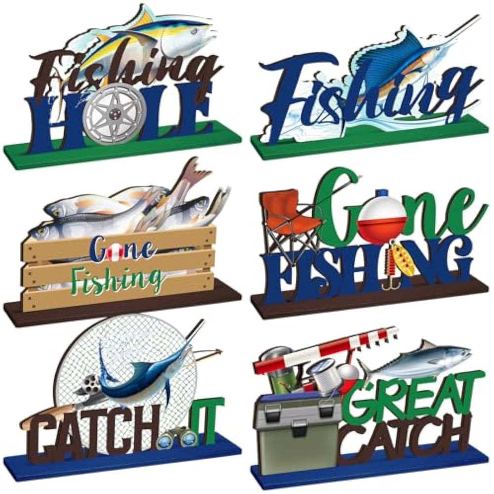 | What You Get: Our Pack Has 6 Pieces Of Summer Fishing Wooden Sign In 6 Styles, Ample Quantity And Various Styles Can Meet Your Needs, Also Nice For Sharing With Others, Suitable For A Variety Of Events, Settings, Or Locations And Watch As It Transforms The Area Into A Vibrant And Festive Locale | | Chic Summer Flavor Finish: The Fishing Decor Comes In 6 Styles, Aesthetic Appeal With Our Blue Finish, Is Full Of Summer And Fish Atmosphere, Designed With Delicate Patterns, And Bright Colors, These Wooden Signs Are The Ideal Blend Of Chic And Whimsical, Lending A Charm To Your Environment | | Easy To Use: Our Summer Fishing Wooden Signs Are Made With User Convenience In Mind; The Base And Its Above Wooden Topper You Will Receive Are Separated From Each Other, You Need To Assemble Them Together By Yourself; You Only Need To Align The Wooden Sign With The Base, And Then Press The Wooden Sign Into The Card Slot Of The Base | | Sturdy And Reliable Material: These Fishing Centerpieces For Tables Are Made With Quality Wood, Ensuring Sturdy Material For Long Lasting Use, Smooth Surface, Comfortable To Touch, Reliable To Use; These Wooden Signs Are Approximately 7.09 Inches/18 Cm In Length Making Them A Noticeable Feature In Any Setting | | Wide Application: These Fishing Party Decorations Has Wide Range Of Use, Suitable For Tables, Mantels, Counters, Coffee Tables, Bedside Tables, Entrances And Shelves In Your Bedroom, Living Room, Office, Kitchen, Dining Room And More | |