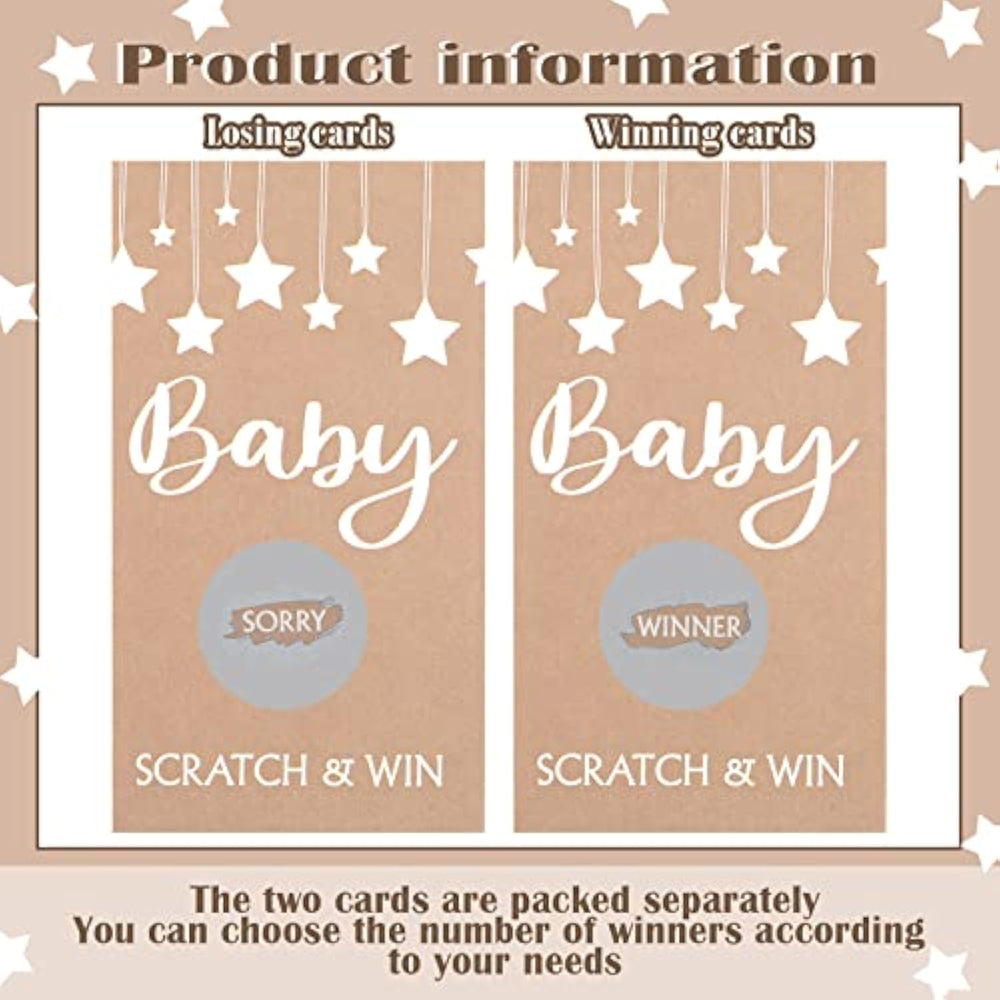 | Package Includes: You Will Get 60 Pieces Of Baby Shower Games Scratch Off Cards, Including 10 Pieces Of Winner Cards And 50 Pieces Of Sorry Cards, Which Are Enough For You To Use And Replace; The Two Cards Are Packed Separately, So You Can Easily Distinguish Them And Choose The Number Of Each Card You Need | | Suitable Occasions: The Rustic Theme Scratch Off Cards Are Suitable For Your Birthday Party, Baby Shower, Wedding And Holiday, To Liven Up Your Party And Create Unforgettable Memories For Your Guests | | How To Play: Diy Scratch Off Cards Are Easy To Use, You Can Use Your Nails Or Other Tools To Scrape The Silver Part, And Then These Cards Will Reveal Winner Or Sorry; The Winner Is The One Who Scrapes The Winner Card | | Reliable Material: The Scratch Off Prize Cards Are Made Of Paper Material, Which Is Sturdy And Reliable, Hard To Break Or Tear, With Clear Color And Pattern, Not Easy To Fade, Can Be Applied For A Long Time | | Portable Size: Each Baby Shower Scratch Ticket Is About 9 Cm/ 3.5 Inches Long And 5 Cm/ 2 Inches Wide, Portable And Light, You Can Put It In Your Bag And Pocket Without Taking Up Too Much Space | |