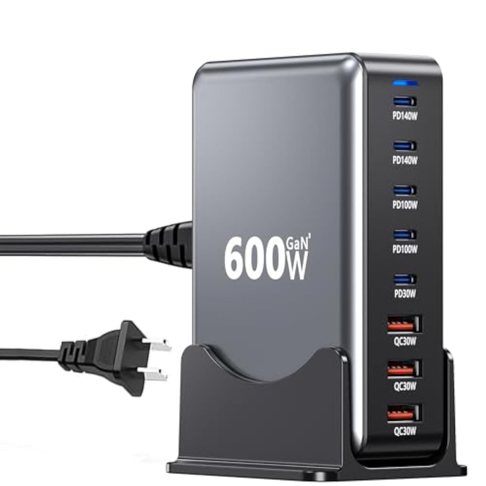 | ?600 W 8-In-1 Fast Charger?: Our Usb-C Fast Charging Power Supply Comes With 5 Usb-C (Up To 140 W) And 3 Usb-A (Up To 30 W) Power Supplies For A Total Output Of Up To 600 W. It Can Charge Up To 8 Devices At The Same Time. | | ?Charge Multiple Laptops At The Same Time?:The Desktop Charging Station Has 5 Usb C Ports With A Maximum Output Power Of 140 W; 3 Usb A Ports With A Maximum Output Power Of 30 W. It Supports High-Speed Charging Of Multiple Laptops At The Same Time. Save Your Valuable Time And Improve Your Work Efficiency. | | ?Universal Compatibility?: Usb Multi-Port Charging Block Is Compatible With Iphone Series/Samsung Galaxy Phones/Google Pixel/Laptops Macbook Pro/Mac Book Air/Dell/Hp/Acer/Watches, Switch And Most Of The Devices With Usb C Port Or Usb A Port. | | ?New Gan Technology?Usb C Fast Charging Station Hub Adopts Gan-Iii Chip Technology, Built-In Multiple Protection Systems And High-Quality Microchips To Ensure Safe Charging And More Efficient Power Transmission, And Pps Fast Charging Protocol Intelligently Stops Charging, Avoiding Overcurrent And Overheating Of The Device, Experiencing Worry-Free Charging. | | ?You Will Receive?: 1 * 600W 8-Port Usb C Charger, A Power Charging Cable And A Manual. If You Have Any Questions About The Item, Please