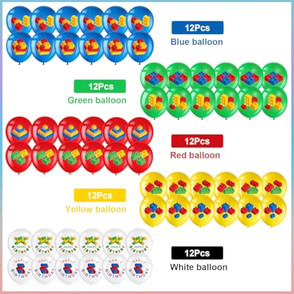 This set includes 60 vibrant latex balloons, each measuring 11.8 inches (30 cm), perfect for decorating and energizing your party space. Made from high-quality, durable latex, these balloons are elastic, reliable, and safe for kids. Featuring a fun building block design with "Happy Birthday" printed on them, they come in bright red, yellow, blue, green, and white, adding a playful and colorful touch to your celebration. Ideal for birthdays, these balloons will create a lively and memorable party atmosphere.