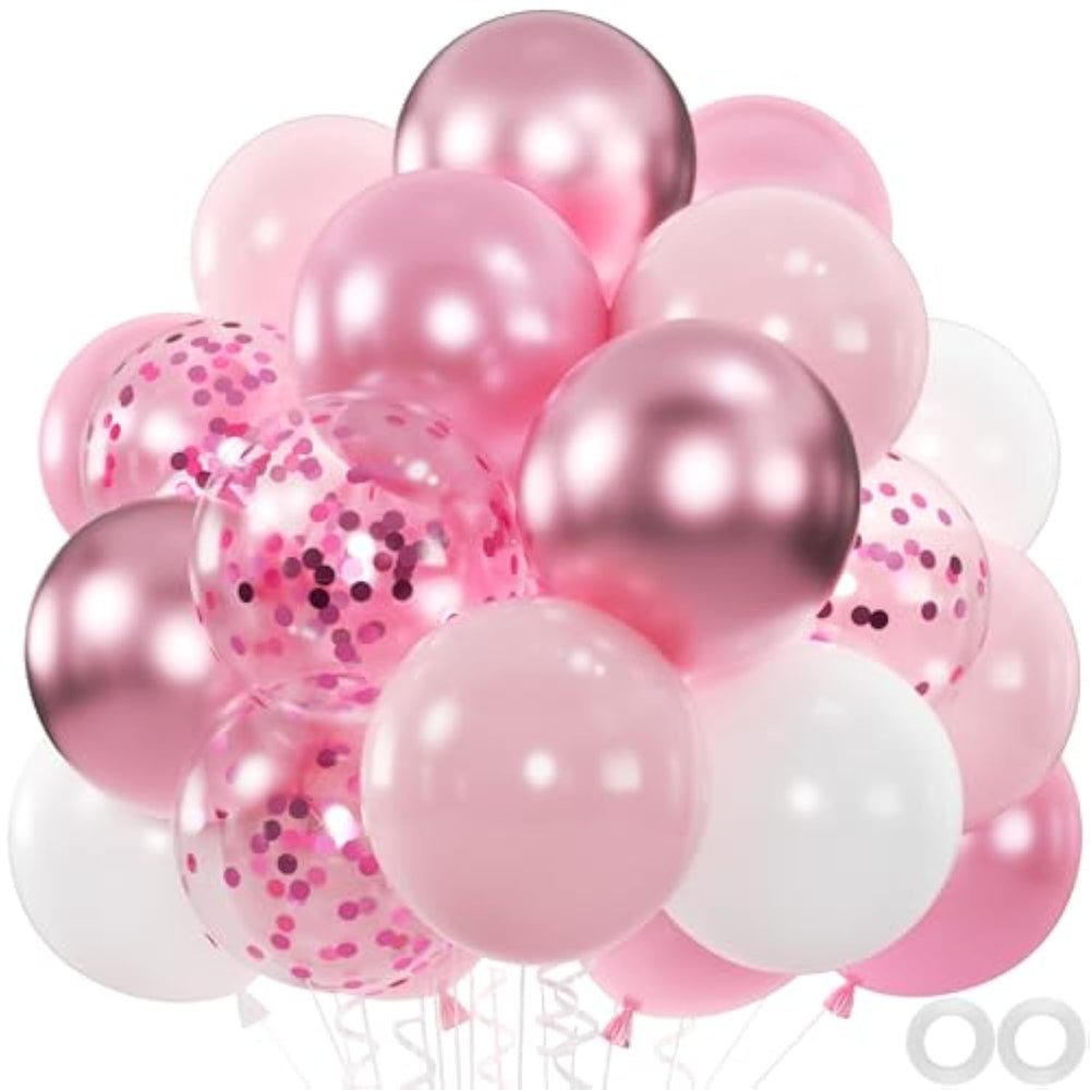 | Pink And White White Party Balloons Kit : Includes 15 Pastel Pink Balloons, 15 Pearl Pink Balloons, 10 Metallic Pink Balloons, 10 White Balloons, 10 Pink Confetti Balloons, 2 Balloon Ribbons. All The Balloon Size Is 12 Inches After Inflation. | | Durable Long-Lasting : Made From High-Quality Latex,These Thickened Party Balloons Weigh 2.8 Grams Each, Which Is Durable And Long Lasting, You Can Use It Safely At Parties.Ideal For Indoor/Outdoor Events! | | Perfect Party Balloons Decorations : You Can Use These Pink And White Balloons To Make Balloon Arch, Balloon Column, Balloon Flower Bouquet For Birthday, Wedding, Gender Reveals, Class Of 2025 Grads, Anniversary, Retirement, Bachelorette, Bridal Shower, Baby Shower Party Decorations. | | Classic Meets Bold Colors Combination: Our Pink White Balloons With Confetti Balloons Blend Vibrant Energy With Timeless Sophistication, Creating A Striking Color Palette That Elevates Any Event. | | All-Occasion Ready: Elevate Holidays Like Mother’S Day, Christmas, New Year’S Eve, Valentine’S Day! Transform Your Party With These White Pink Balloons! | |