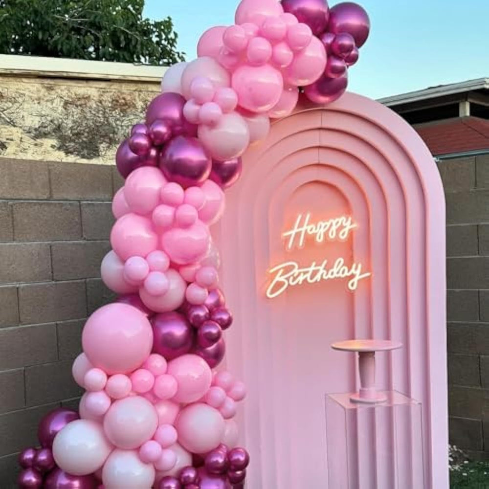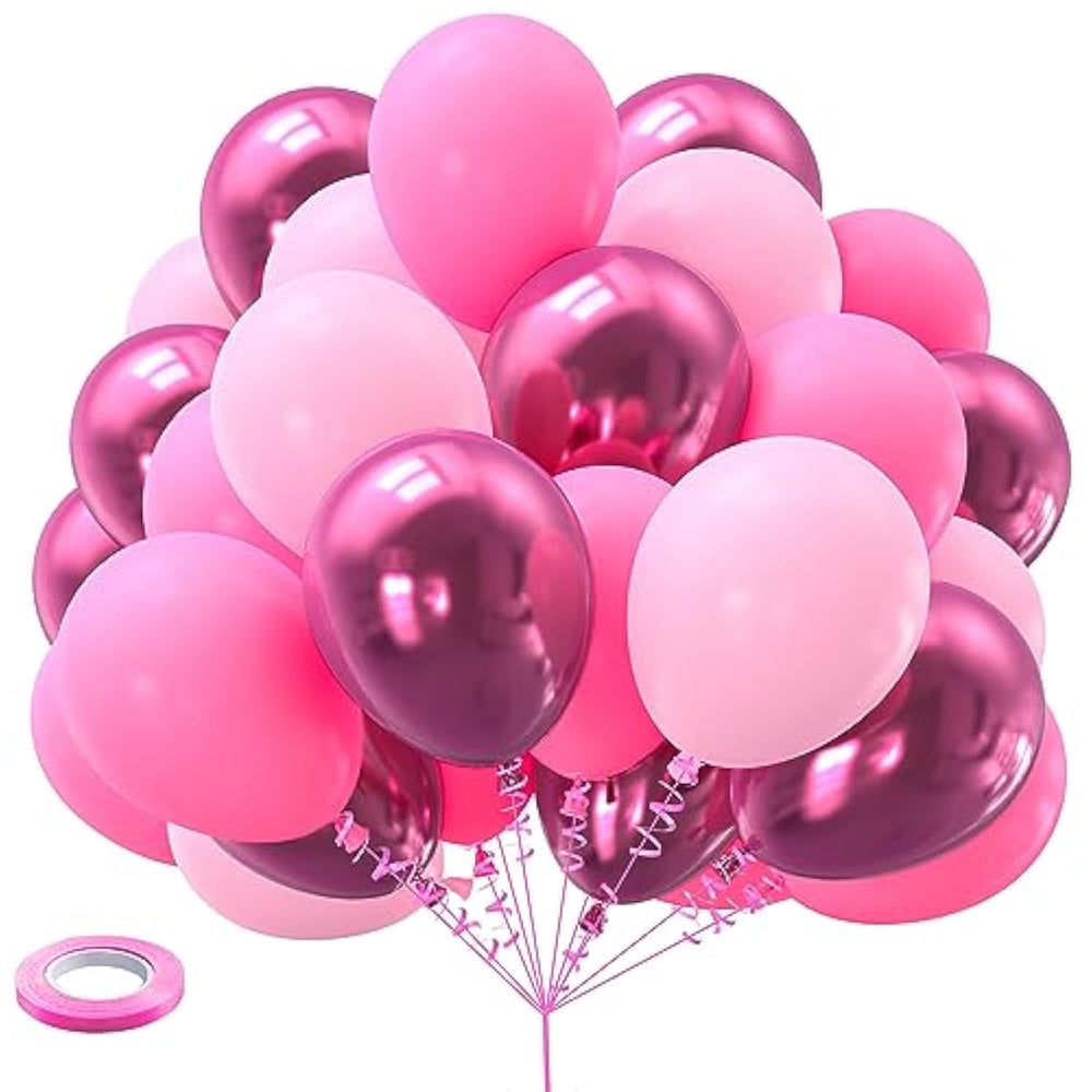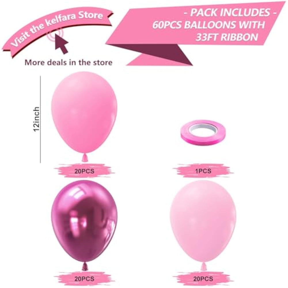 This 60-piece Pink Balloon Set features a mix of 12-inch light pink, pastel pink, and metallic hot pink balloons, along with a 33ft pink ribbon—perfect for creating eye-catching balloon arches, garlands, or bouquets. Made from durable, non-toxic natural latex, these balloons are thick and long-lasting, ideal for birthdays, baby showers, weddings, or princess-themed parties. Easy to inflate with air or helium, this DIY kit adds a fun, romantic touch to any celebration and makes decorating a creative family activity.