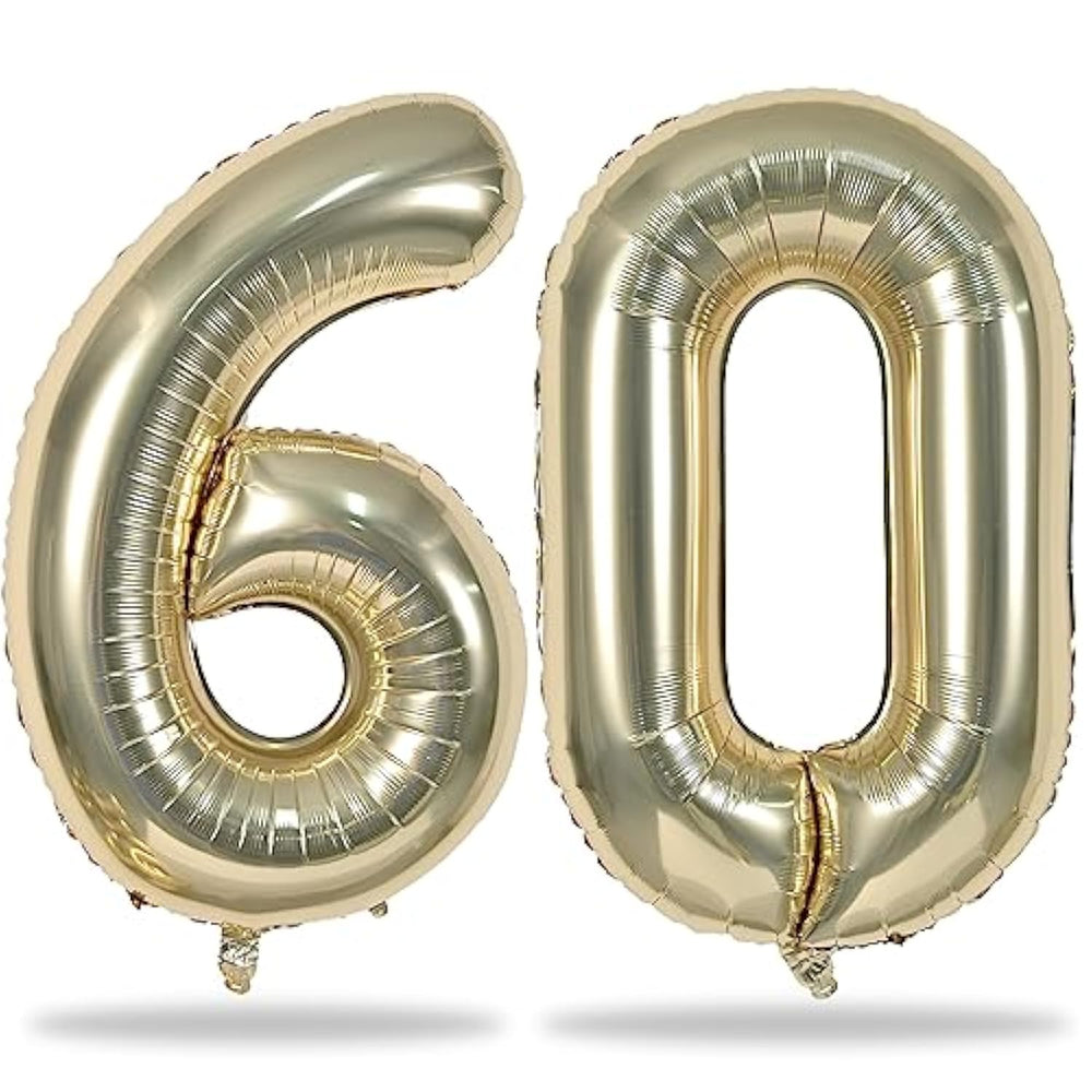 | ?? Champagne Gold Number 60 Balloons Set ?? - You Will Get 2Pcs 40 Inch Mylar Foil Number Balloons (Number 6 + Number 0) And 1Pc Straw. Perfect For Decorating Women Men 60Th Or 6Th Birthday Party. | | ?? Large Size High Quality ?? - This Giant 40" Mylar Light Gold Number 60 Balloons Are Made Of High Quality Aluminum Foil, All The Balloons Are Safe, Durable, Non-Toxic, Strong And Light. The Number Foil Balloons Can Be Reused. Just Fill 90% Of The Balloon That Could Allow The Balloon To Expand Completely. | | ?? Easy To Inflate ?? - The Champagne Gold Number 60 Foil Balloons Have Self-Sealing Valve Does Not Need To Be Knotted For Easy Inflation And Deflation. It Can Be Inflated With Air Or Helium. When Filled With Helium, The Balloons Can Float In The Air; After Filling, Press The Valve Of The Big Digital Balloon To Seal It. It Can Be Reused. Do Not Throw Away After Use! | | ?? Repeated Use ?? - The Gold 60Th Birthday Balloons Numbers Kit Contains A Straw That Can Be Used To Deflate The Foil Balloon, Simply Insert The Straw Into The Valve And Press Gently Until The Gas Is Completely Expelled. After Use, It Can Be Folded And Stored For Reuse. | | ?? Perfect Party Decorations ?? - The Elegant Light Gold Number 60 Mylar Foil Balloons Set Is Ideal For Men And Women 60Th Birthday Party Balloons, As A Backdrop Or Photo Props, Pool Party, 60Th Anniversary Event Wedding Party, Baby Shower Party, Engagement Ceremony, Graduation Party Decorations Supplies. | |