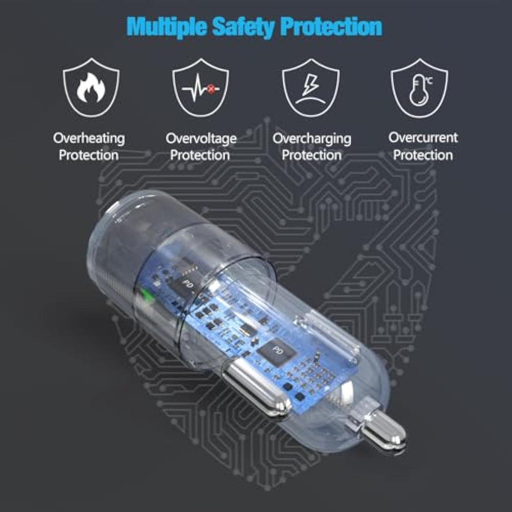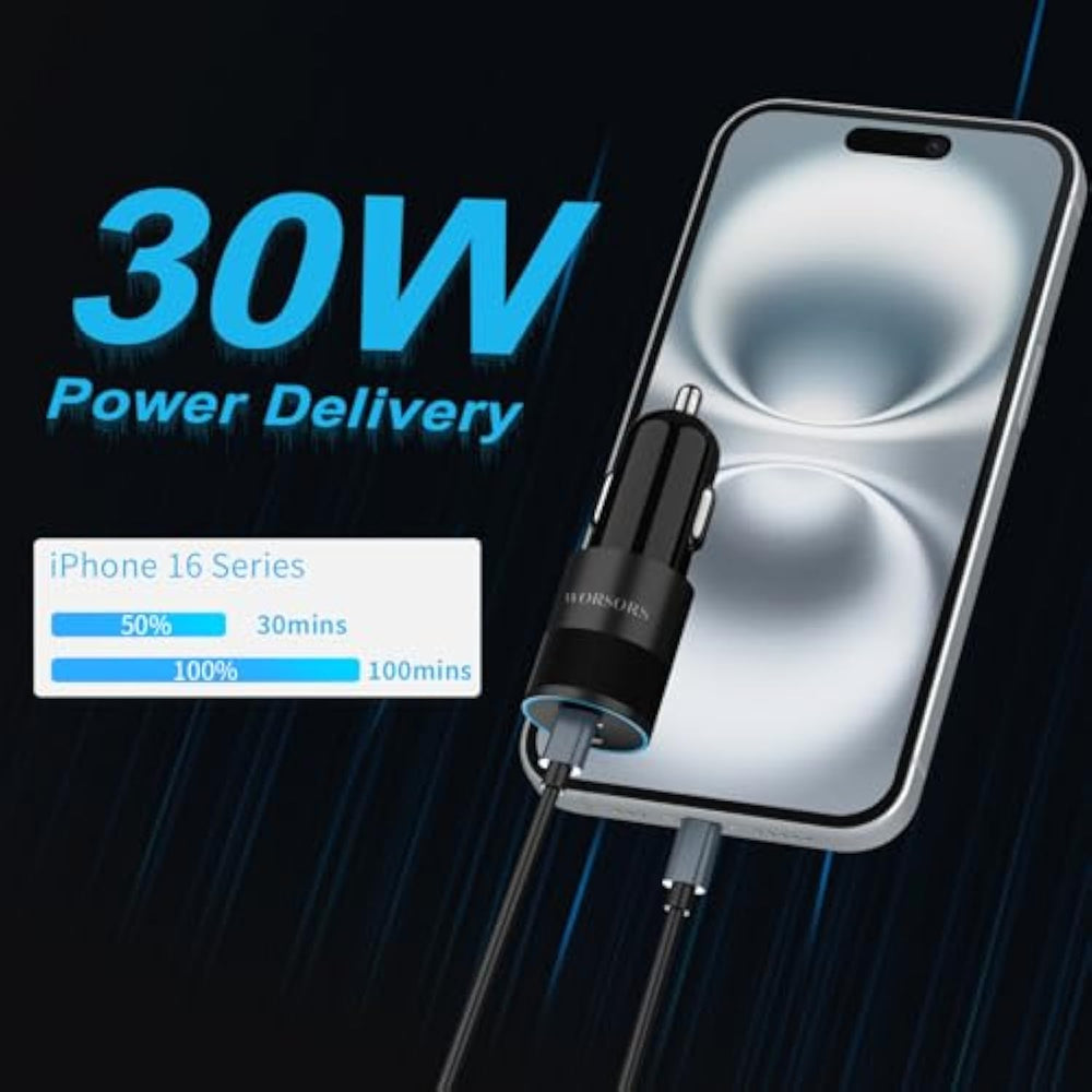 | Fast Charging Speed: A 60W Power Delivery 3.0 Fast Charger Can Charge Iphone 16 Up To 50% In 30 Minutes, And It Only Takes 100 Minutes To Fully Charge. The Speed Is 3X Times That Of A 5V/1A Charger(Fast Charging Compatible List: Iphone 16 Pro Max, 16 Pro, 16 Plus, 16, 15 Pro Max, 15 Pro ,15 Plus, 15, Ipad Air 5, Ipad 2022, Ipad Mini 6, Ipad Pro 2022, Ipad Pro 2020) | | Driving Comfort: Car Phone Charger Plug Is Suitable For Most Car Lighters. The Spring Design On Both Sides Is Easy To Pull Out And Insert, And The Socket Is Always Inserted During Driving, Ensuring That Charging Is Not Interrupted During Bumpy Road Sections. The Soft Blue Indicator Light Can Accurately Locate Without Distracting Or Affecting Night Vision | | Safety Protection: Possess Ul 2089, Ce, Fcc, And Rohs Safety Certifications. The Intelligent System Provides Multiple Protections To Prevent Internal Short Circuits, Overheating, Overcurrent, And Overcharging Within The Device. Ensure The Safe Operation Of The Equipment | | Universal Compatibility: Compatible With Iphone 16/Pro/Pro Max/Plus, 15/Pro/Pro Max/Plus, Ipad Air 5, Ipad 2022, Ipad Mini 6, Ipad Pro 2022, Ipad Pro 2020, Google Pixel 8/7/6/Pro/5/5A/4/4A/4Xl/3/3Xl/3A/3A Xl/2, Galaxy S25/S24/S23/S22/S21/S20 Ultra/Plus/S20 Fe, A54/A53/A52/A51/A50/A50S/A42/A32/A41/A101/A10E/A90/A40/A30/A30S/A20, Z Fold 5/Z Flip 5/Z Fold 4/Z Flip 4, Note 10/9/8, S10/S10+/S10E/S9/S+/S8/S8+ | | What You Get: 60W Pd Car Charger X 1, 3.3Ft Cable X 1? Care X 18 Months, Online Response X 24 Hours | |