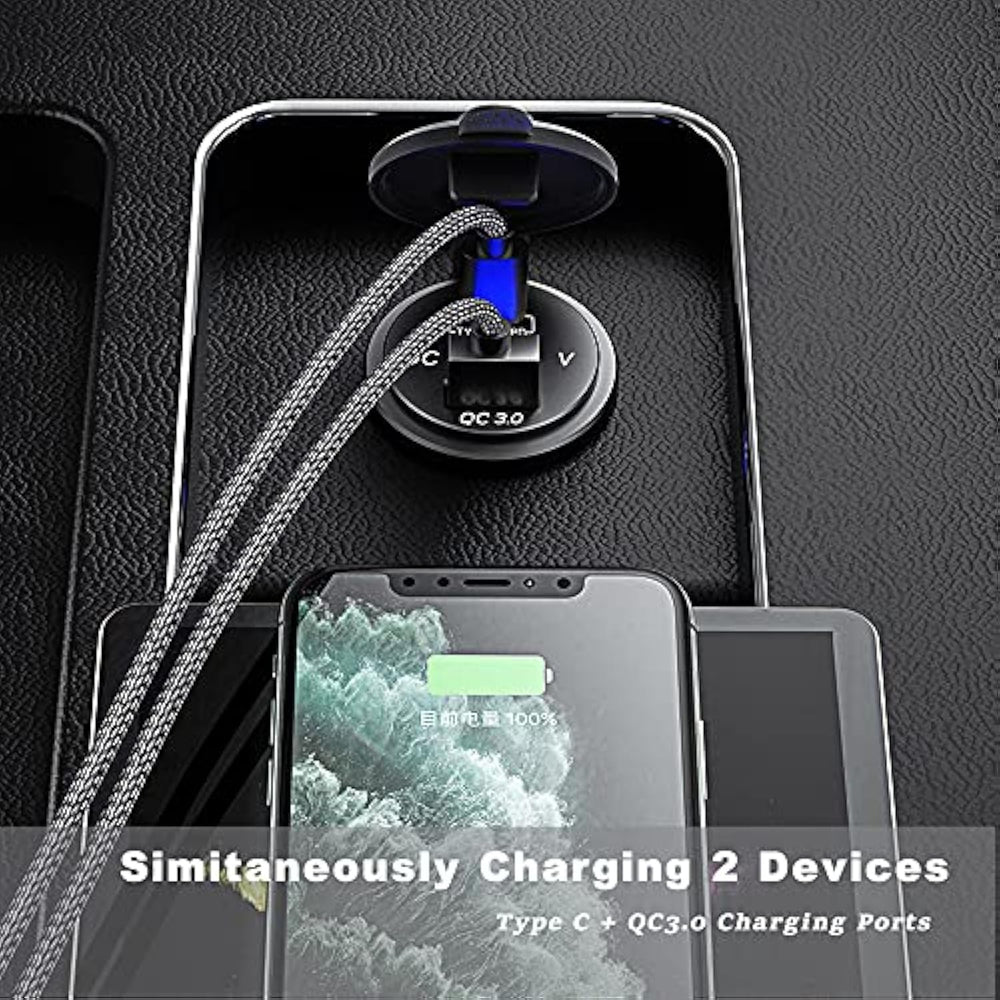 | [ Type C And Qc3.0 Usb Car Port] The Most Advanced Type C Power Delivery 2.0 Waterproof Socket Technology Provides A Blazing-Fast Charge To Usb-C Devices, While Qualcomm Quick Charge 3.0 Technology Provides A Charge Speed Which Is Up To 4X Faster Than Conventional Charging, Charges Twice As Fast As Quick Charge 1.0 And 38% More Efficient Than Qc 2.0. | | [ Led Voltage Display ] This Car Charger Socket Builts In Digital Led Voltage Monitor, Displays The Real-Time Accurate Voltage Status Of Your Vehicle'S Battery For Preventing Problems Caused By Low Voltage, The Led Light Also Makes Quick And Easy To Find Usb Ports In The Dark Or At Night. | | [ One Charger, Any Device ] Charge Usb C And Standard Usb Phones And Tablets, Such As , Galaxy Note 7,Google Pixel Xl, Iphone 8/ 8 Plus/ X/ 7/ 6S, Samsung Note 9/ Galaxy S9/ S9+/ S8/ S8+/ S7,Note 8, Tabpro S/ S8/ S8 Plus/ Nintendo Switch, Htc 10, Ipad, Android Tablets, Power Banks, Video Games Controllers, Sports Watch Etc. | | [ Certified Safe N ] With Smart Sense Ic Technology, Each Port Intelligently Identifies Your Device And Seeks To Maximize Its Charging Speed. Built-In Safeguards Protect Your Devices Against Excessive Current, Overheating, And Overcharging. | | [ What You Get ] 12V Usb Type C + Qc 3.0 Outlet, 23.7 Inches Wire With 10A Fuses(One Installed) | |