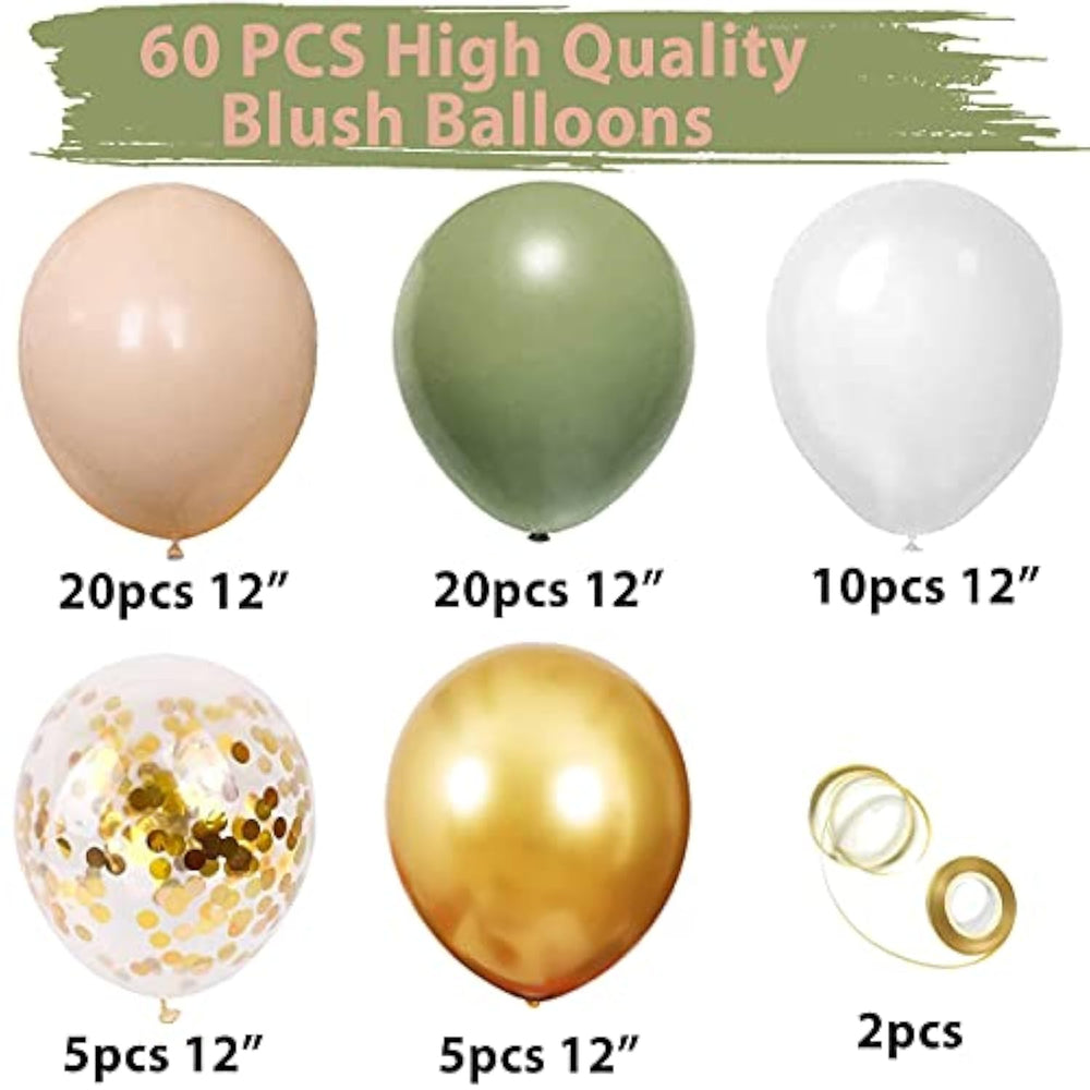 | Package Include: 4Pcs Artificial Eucalyptus Leaves Stems, 20Pcs 12 Inch Sage Green Balloons, 20Pcs 12 Inch Blush Balloons, 10Pcs 12 Inch White Balloons, 5Pcs 12 Inch Metallic Gold Balloons, 5Pcs 12 Inch Gold Confetti Balloons, 2Pcs Gold Ribbons. | | Occasion: Eucalyptus Sgae Green Blush Balloon Decoration Are Perfect For Your Wedding Party, Bridal Shower, Baby Shower, Themes Of Jungle, Safari Party. They Are Perfect For Assemble To Balloon Arch. | | Easy To Use: These 12 Inch Latex Balloons Can Be Inflated With Air Or Helium, Fill With Pure Helium If You Want Them To Float. 2 Rolls Of Curling Ribbon Is Included To Tie Up Balloons. | | Material: Our Party Balloons Are Made Of Natural Latex. High Quality Eco-Friendly Material. Not-Easy Burst And Safe To Use. Can Be Filled With Air Or Helium. | | Party Balloons: Nice Gift And Decorations For Children. Please Do Not Overfill The Balloons. | |