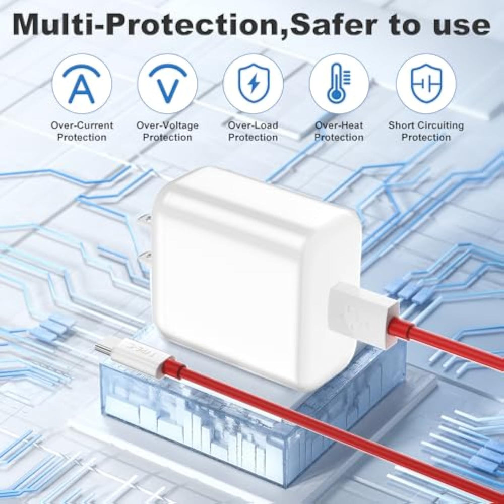 | 65W Fast Warp Charger : This 65W Warp Charger Power Adapter Is Designed For Oneplus. It Charge For Oneplus Mobile Phone From 3% To 65% In About 20Mins | | Companion For Your Oneplus Phone : Charge Up While Playing, Still Fast And Cool. Portable Compact Design, And 100-240V Input Are Ideal For Worldwide Travel Or Home And Office | | Safe And Reliable Warp 65W Charger : Built-In Smart Chip Protects Your Mobile Phone From Over-Heating, Over-Voltage, Over-Current And Short Circuit. Original Pcb Board Design And Manufacturing Process Ensures Safety Regardless Of Charging Time | | Wide Compatibility : Fast Charger Supports 65W Warp Charge For Oneplus 13R/Open/Pad/9Rt/9 Pro/9R/9/ Nord 2 5G/8T+ 5G/8T/8T. 30W Warp Charge For Oneplus 8 /8 Pro /Nord Ce 5G /Nord N10 5G /7T/ 7T Pro/7T Pro Mclaren /7 Pro/6T Mclaren | | What You Get : 1 X 65W Warp Charger For Oneplus, 1 X 3.3Ft Type A To Type-C Warp Charging Cable. If You Have Any Questions, Please Feel Free To