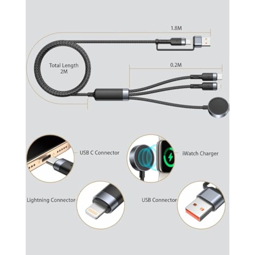 | Multi Charging Cable Wide Compatibility: 3 In 2 Iphone And Iwatch Charger Cable Not Only Works With Iwatch 10 9 8 7 6 5 4 3 2 Se Ultra, But Also Suitable For Iphone 16/16 Plus/16 Pro Max/16 Pro/15/15 Plus/15 Pro Max/15 Pro/14 Pro Max/14 Pro/14 Plus/14/13 Pro Max/13 Pro/13/12 Pro Max/12 Pro/12/12 Mini/11 Pro Max/11 Pro/11/Xs/Xs; Samsung Galaxy S25/24/S23/S22 Etc. | | Magnet Design Iwatch Charger Cord: 3 In 2 Usb C Iwatch Charger With A Lightning/Type C Port And An Iwatch Magnetic Charging Terminal, Can Simultaneously Charge Which Compatible With Iphones And Iwatch, It Can Fast Fully Charge Your Phone Or Iwatch Within 2.5 Hours. Iwatch Charger Cable With Strong Magnetic Adsorption, Simply Bring The Connector Close To The Back Of The Watch, And It Will Automati