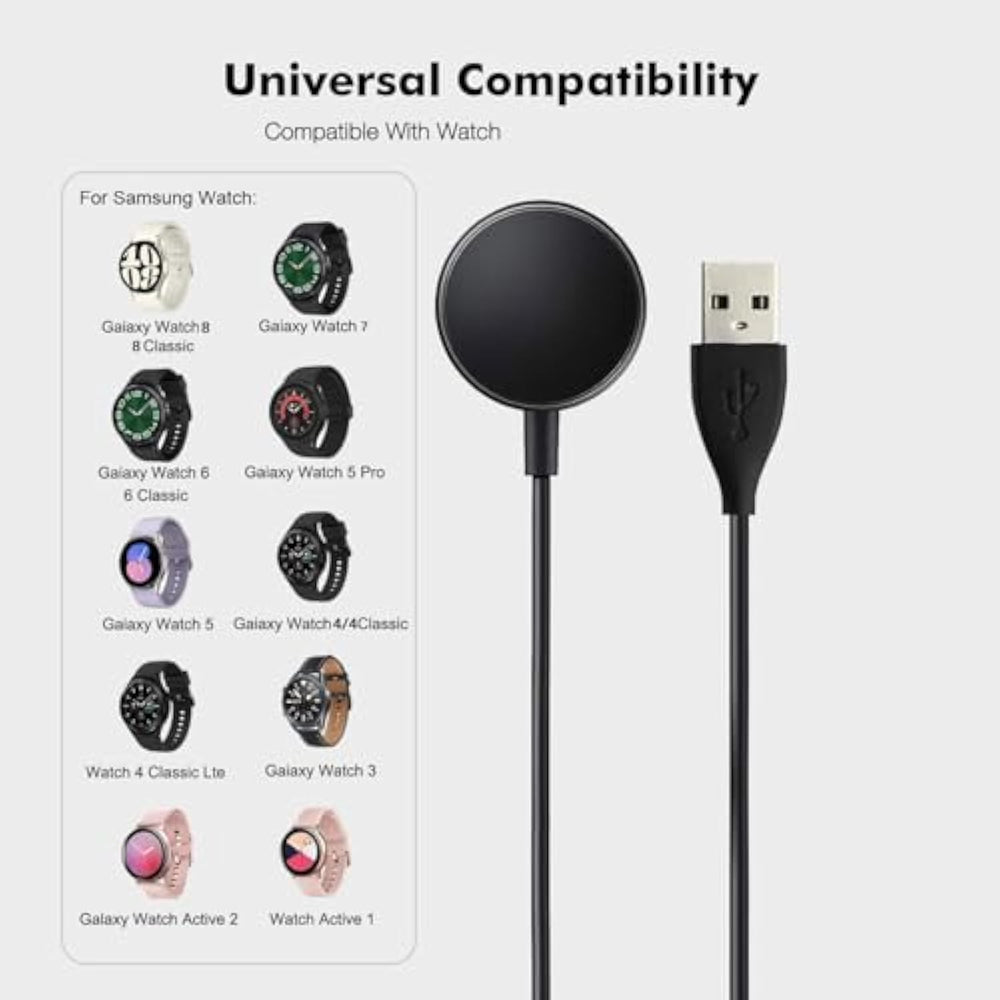 | This Is The: Samsung Galaxy Watch Charger | | Color: Black, Length: 6 Ft | | Package Included: 1 X 6 Ft/2M Usb Magnetic Charging Cable | | Fit For: Samsung Galaxy Watch 8, Watch 8 Classic, Watch 7, Watch Ultra, Watch 6, Classic 6, Watch 5, Watch 5 Pro, Watch 4. Watch 4 Classic, Watch 4 Classic Lte, Watch 3, Active 2, Active 1 | |
