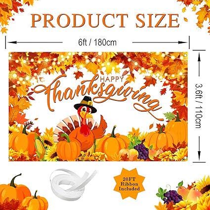 This 70.8x43.3 inch Thanksgiving backdrop features a vibrant turkey design with high-resolution digital printing and lifelike colors. Made of lightweight, premium polyester, it comes with a rope for easy hanging and corner holes for quick setup. Minor wrinkles can be smoothed with a low-heat iron. Perfect for photoshoots, wall decor, tapestries, cake table displays, studio photography, or video backdrops, it adds a festive touch and creates memorable experiences.