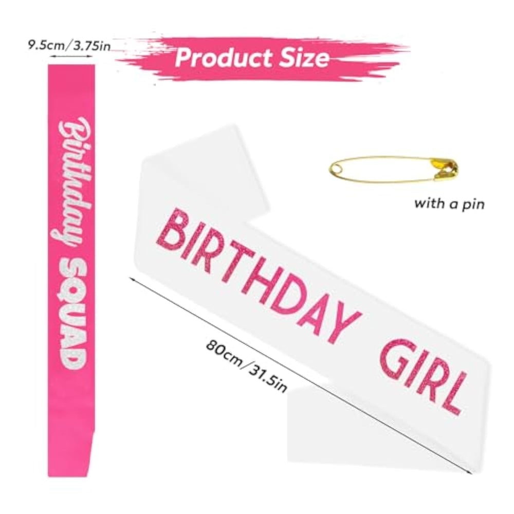 | Attractive Design:The Hot Pink Glitter Letters "Birthday Girl" On The White Birthday Sashes Make Them Not Only Birthday Party Decorations, But Also Great Props For Your Photos; Try To Take Some Unforgettable Photos With The Birthday Sashes On And With Your Friends And Family Around | | Gift For Birthday King Party: 1 Pcs Birthday King Sash And 6 Pcs Birthday Squad Sashes Included, You Can Upgrade Your 16Th 18Th 21St 30Th 40Th 50Th 60Th Any Other Bday Birthday Parties. Enjoy A Memorable Funny Birthday With Your Friends Together And Stand Out With This Beautiful Birthday Sash, It Could Be Smart Photography Props | | One Size For All: Birthday Girl Sash Is 31.5 Inches Length (One Side) And 3.74 Inches Width. A Safety Pin Is Included Inside, Which Can Be Used To Fix The Sash, Our Sash Is Suitable For Most People, You Can Use It With Confidence | | Premium Quality: The Stylish Birthday Girls Sash Made Of Premium Quality Smooth Fabric Satin Sash . Unlike Other Poorly Made Sashes, This Birthday Sash Does Not Tear Or Wrinkle Easily. No Need To Worry About Letters Peeling Off, Durable And Reusable For The Following Years | | After-Sales Service: Please Note That If The Sash Arrives Slightly Wrinkled From Transit - It'S Best To Iron On The Back Of The Sash To Prevent The Foil From Melting! Wish You Or Your Family And Friends Have A Nice Party | |