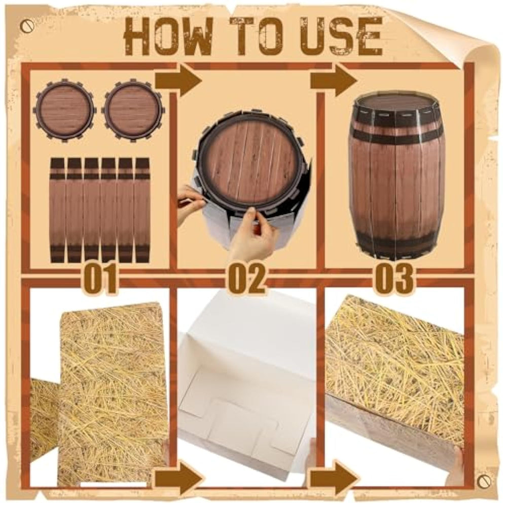 | Package Contents: You Will Receive 1 Piece Of Western Cowboy Theme Party Backdrop, 2 Farm Hay Boxes, 1 Wooden Box, 1 Paper Whiskey Barrel, 1 Wooden Wheel, 1 Inflatable Cactus, To Build An Ideal Western Cowboy Party Scene | | Suitable Size: Backdrop Size Is About 5.9 X 3 Ft, Hay Box Is About 15.7 X 9.8 X 9.8 Inch, Wooden Box Is About 11.8 X 11.8 X 11.8 Inches, Barrel Is About 15.7 X 9.8 Inches, Wheel Is About 11.81 X 11.81 X 0.2 Inches, Inflatable Cactus Is About 36 Inches High | | Quality Materials: These Cowboy Party Decoration Products Made Of Paper, Wood And Polyester Fabrics Are Reusable; Use Our Party Supplies To Add A Touch Of Cowboy Atmosphere To Your Party | | Multi-Scene Use: You Can Diy The Party Scene You Want, And Our Products Can Well Enhance The Atmosphere Of Your Cowboy Theme Party, Country Party, Or Western Birthday Or Wedding | | Ideal Decoration: Let Us Create The Atmosphere For Your Cowboy Decoration Party, Western Theme Party, Country Party And Other Events, Its Rustic Beauty Not Only Helps To Create The Atmosphere, But Also Can Be Applied As An Ideal Prop For Theme Photos | |