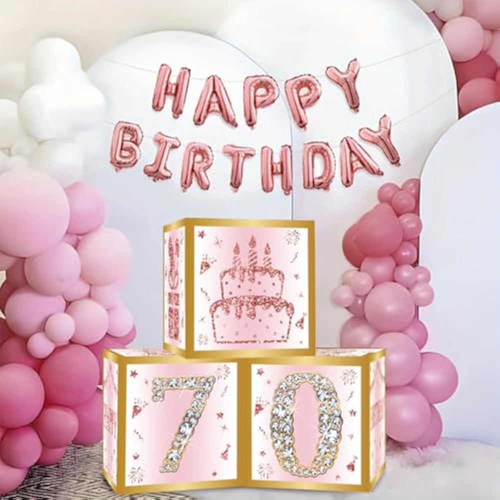 | You Will Get - 3 Pink Rose Gold Boxes (Size 10.6“*10.6“*10.6“) For 70Th Birthday Party. Decorate Your Party With These Boxes, Make It More Eye-Catching, Impress Your Guests, And Most Importantly Let Your Family Enjoy This Party | | 70Th Birthday Party – Our Pink Rose Gold 70Th Birthday Blocks Are Made Of High-Quality Paper. Allows You To Protect The Environment While Enjoying The Freshness And Nature | | Design Your Unique Birthday Party - You Can Choose To Put Photos, Brightly Colored Balloons, Candy And Toys In Our Pink Gold Balloon Box, With Such A Unique Design, Your Party Will Be Incomparable And Impressive Profound | | Easy To Assemble -The Party Blocks Are Pre-Folded In The Packaging, As The Picture Describes, You Can Easily Assemble Them.Letters Are Printed On The 70Th Birthday Party Decorations, No Need To Paste By Yourself, Convenient And Fast | | Satisfied Service - We Sincerely Hope That Everyone Will Like Our 70Th Birthday Party Decorations, However,