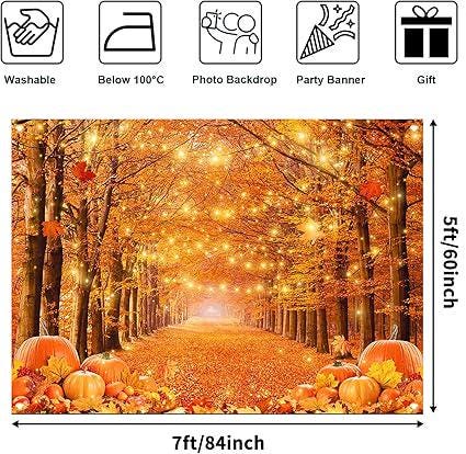 This 7 x 5 ft (84 x 60 in) fall backdrop is made of high-quality polyester fabric, offering vivid colors, softness, durability, and washability while remaining lightweight and easy to hang. Featuring four corner holes for quick setup, it’s ideal for fall-themed parties, birthdays, baby showers, and Friendsgiving gatherings, and pairs well with balloons and tableware for a cohesive décor. Shipped folded, minor wrinkles can be removed by gently ironing the back with a low-heat steam iron.