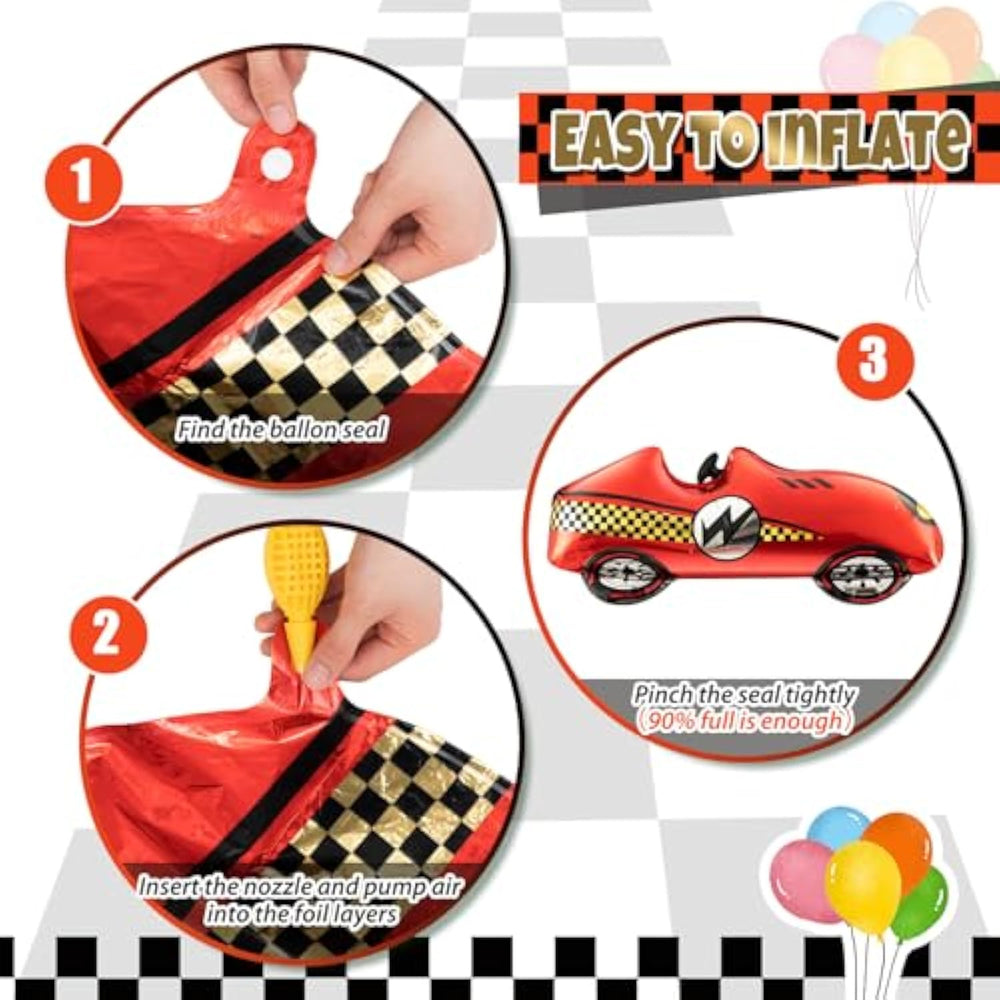 | Engaging Race Car Themed Balloons: Our Set Provides An Exquisite Combination Of 8 Race Car Balloons, Including 2 Large Red Racing Balloons, 4 Wheel Tire Foil Balloons In 2 Styles, And 2 Black And White Checkerboard Flag Foil Balloons; These Balloons Are An Ideal Choice For Creating The Nice Atmosphere At Car Or Traffic Themed Parties | | Excellent Material Quality: Our Race Car Balloons Are Made From Sturdy Aluminum Foil Material With Nice Elasticity, Offering Resistance To Breakages And Fading To Ensure A Longer Lasting Party Experience; These Balloons, Because Of Their Self Sealing Valves, Can Stay Inflated Throughout The Entire Event; Please Note That It'S Advised To Inflate These Balloons Only Up To 90% To Avoid Over Expansion | | Appropriate Sizing: With The Red Race Car Balloons Measuring About 43 X 19 Inches/ 110 X 49 Cm, The Checkerboard Flag Balloons Measuring About 19 X 16 Inches/ 50 X 42 Cm, And The Red Tire Balloons Are About 17 Inches, The Black Tire Balloons Are About 18 Inches; Their Suitable Size Offers Ample Visual Coverage, Effectively Enhancing Your Party Setup And Attracting More Attention To Your Race Car Party Decorations | | Race Car Party Decor: Integrating Cool Racing Cars, Tires, And Checkerboard Flag Elements, These Racing Balloons Encapsulate Typical Race Car Themes, Transforming Your Event Into A Fun Filled Spectacle, Offering Your Guests A Chance To Admire Your Exceptional Party Taste | | Versatile Application: Our Race Car Themed Party Decorations Can Be Utilized In Various Ways; They Are A Nice Fit For Car Birthday Party Decorations, Car Themed Party Decorations, And Race Car Birthday Party Decorations; Their Charming Visual Appeal Makes Them The Excellent Choice For Photo Props Or Backgrounds | |