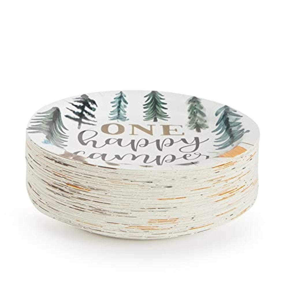 | One Happy Camper Party Supplies: Serve Up To 80 Guests At Your Next Forest-Themed Party With This Set Of One Happy Camper Plates; Large Enough To Hold A Variety Of Lunch, Dinner, Or Dessert Entrees | | Birthday Plates: The Plates Feature A Tent, Bear, And Campfire Surrounded By Pine Trees With "One Happy Camper" Printed In The Center; Ideal For An Upcoming Birthday Or Baby Shower | | Dimensions: Each One Of Our Birthday Plates Measures 9 Inches In Diameter; Perfectly Sized To Fill With Your Favorite Snacks, Main Courses, Pastries, Desserts, And Appetizers | | Sturdy And Disposable: These 1St Birthday Plates Are Made From 350Gsm Whiteboard Paper; Simply Dispose Of These Party Plates After Use; No Need To Stop The Fun To Clean Up | | Package Contents: With Your Order, You Will Receive 80 Disposable Paper Plates With A Camping Scene Featuring A Brown Bear And The Words "One Happy Camper" For A Baby'S First Birthday Party | |